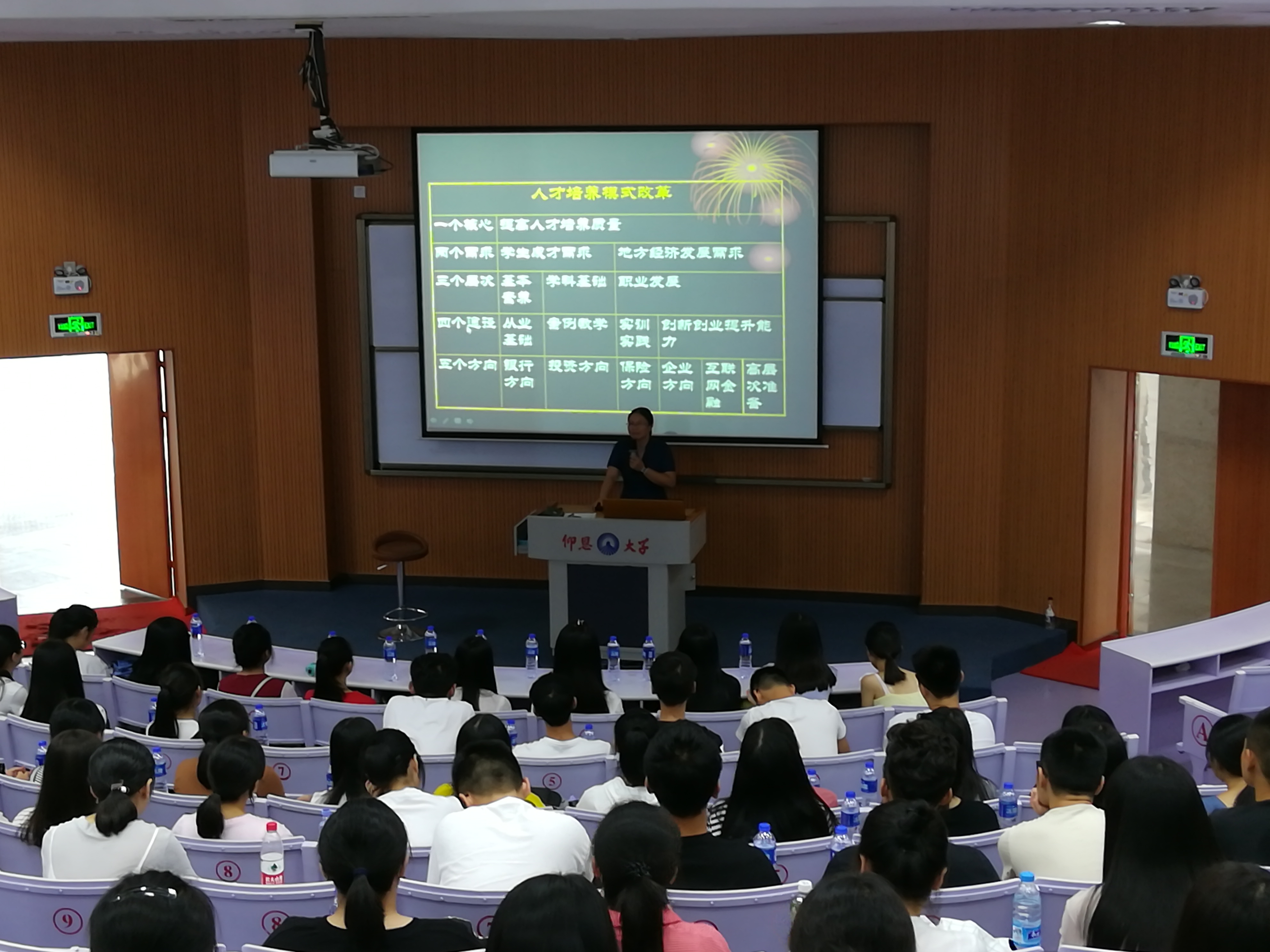 9月14日上午,九游体育金融学系、经贸系、经济学系分别于新区和昌博雅讲堂、思齐讲堂、海纳讲堂开展专业介绍会,会议由各系主任主讲。院长张雪梅、党总支兼副院长吴晓伟、副院长陆泽波、金融学系主任黄淑兰、经贸系主任吴慧明、经济学系主任王建军出席。