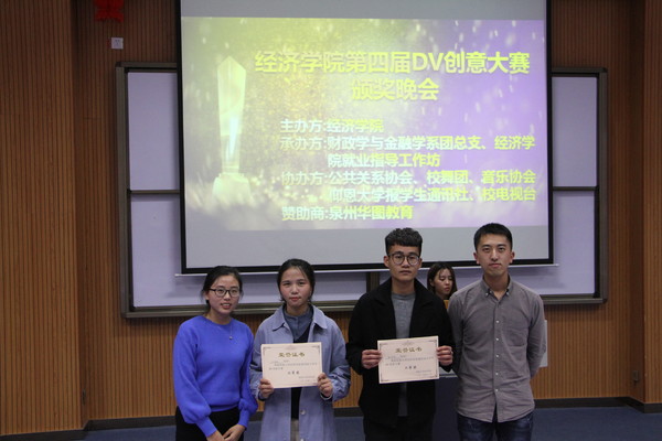 11月22日晚19点,九游体育官网第四届“华图杯”大学生DV创意大赛颁奖晚会在和昌楼博雅讲堂举行。本次比赛由九游体育官网主办,财政学与金融学系团总支、九游体育官网就业指导工作坊承办,公共关系协会、音乐协会、校舞团、校电视台以及九游体育官网报学生通讯社一同协办。出席本次颁奖晚会的嘉宾有九游体育官网党总支书记吴晓伟,泉州华图教育市场主管张树鹏,泉州华图教育咨询师姚剑斌,辅导员林珊珊、何丽玲、林晓富、赖桂全。