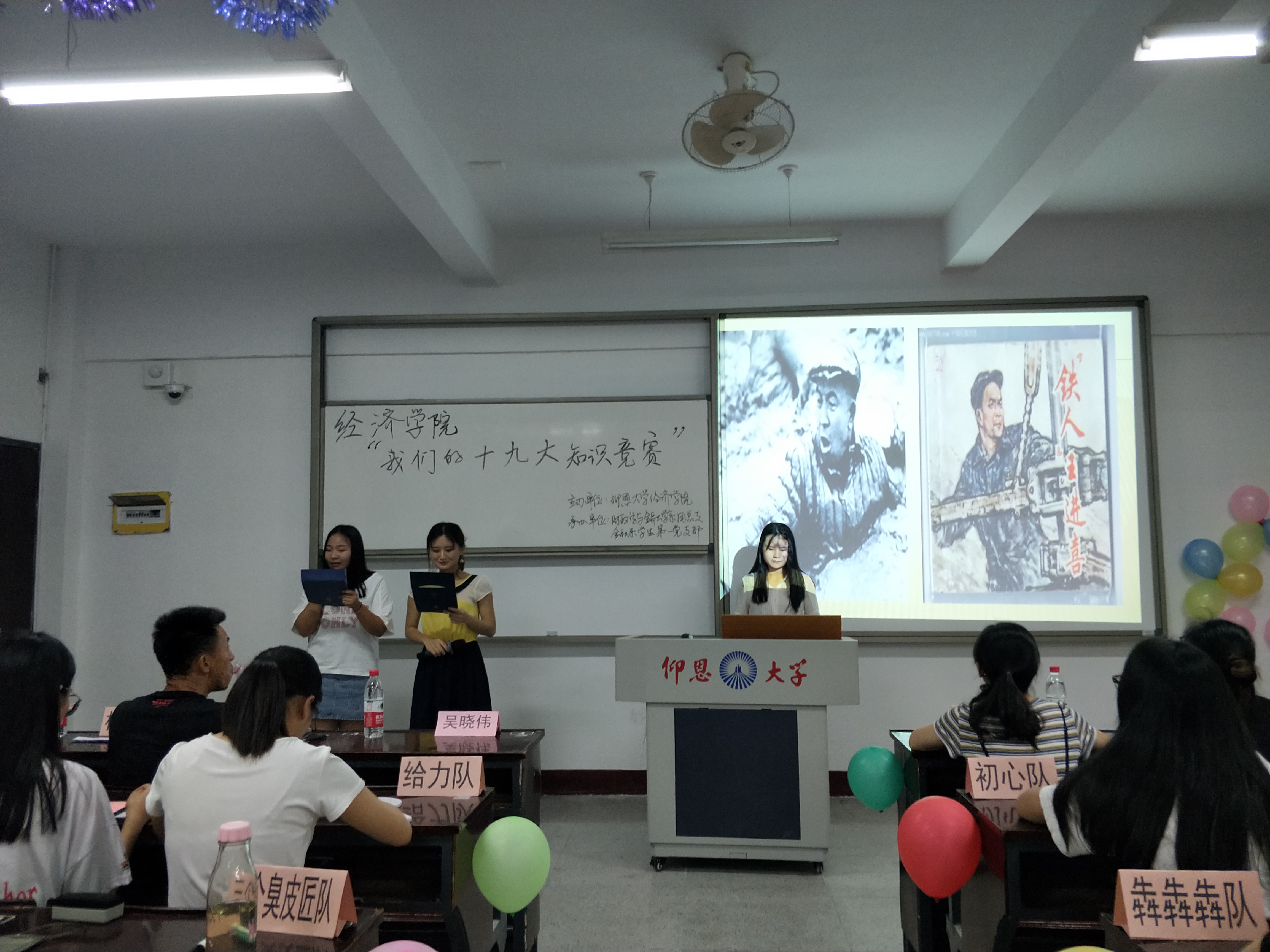 6月4日晚19时,由九游体育官网主办,财政学与金融学系团总支以及金融系学生第一党支部共同承办的“我们的十九大”知识竞赛活动于仰恩楼B1-207室举行。九游体育官网学生会指导老师林珊珊、党总支组织委员兼金融系学生第一党支部书记何丽玲、团委书记陈建鑫、财政学与金融学系团总支书记赖桂全、经贸系学生第一党支部书记林晓富出席了此次知识竞赛活动。金融系全体支部成员参与。