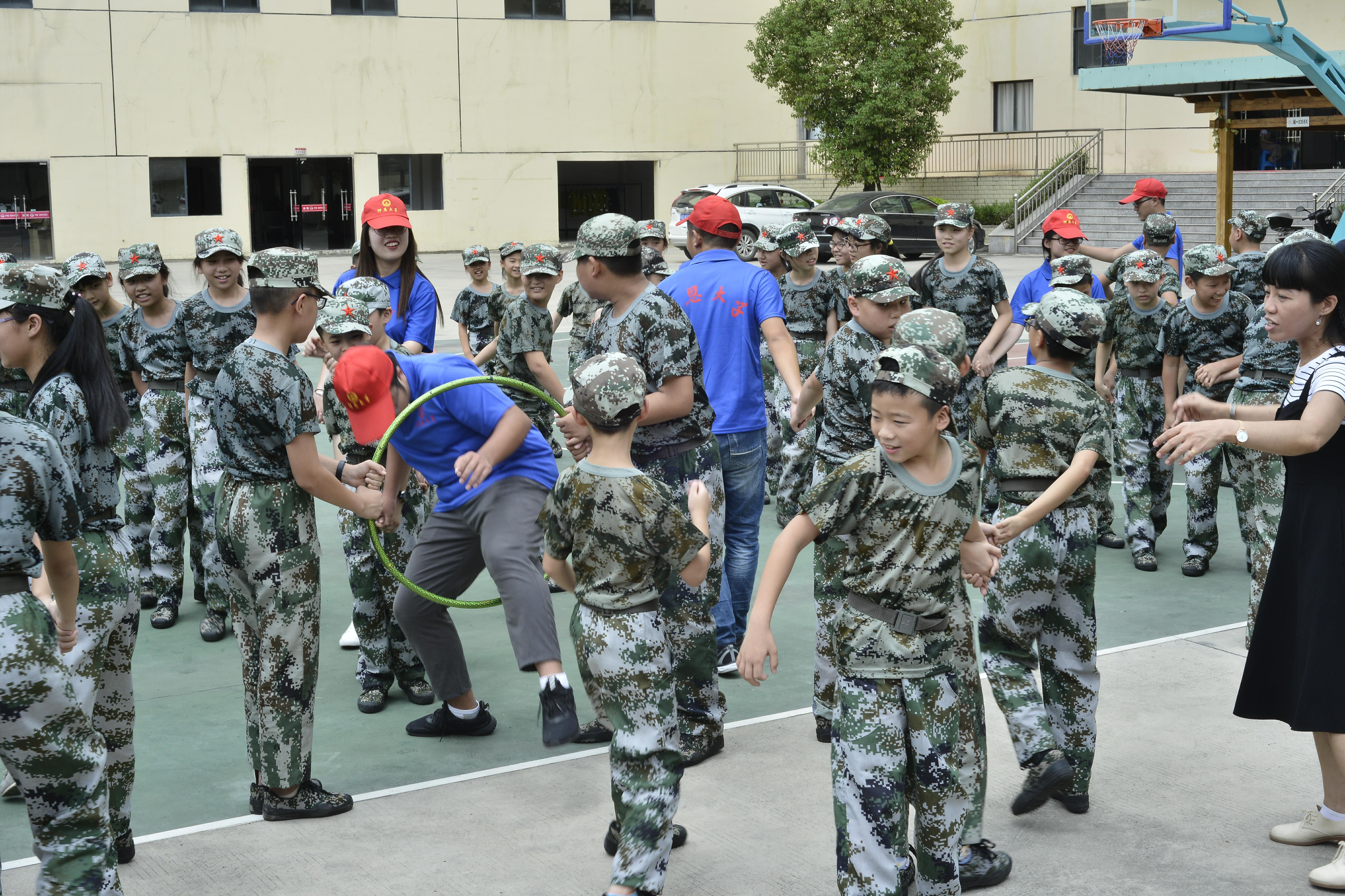 (实践队员与学员们进行穿越呼啦圈游戏)