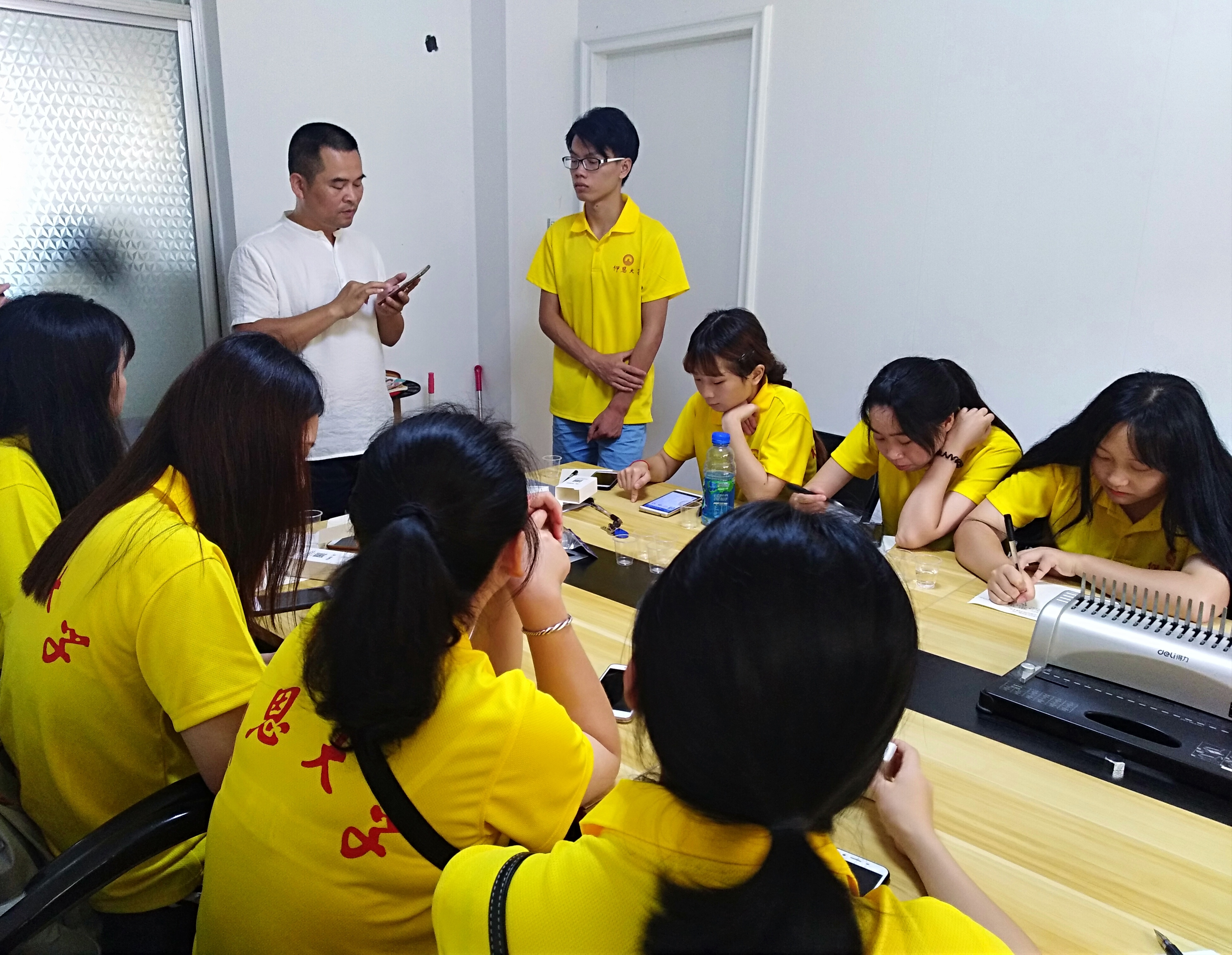 实践队一行人到达智文网络技术有限公司王经理热情接待实践队员分享以往个人经历,公司成立发展概况及主要业务情况。队员们根据工作特性需要分三组,王经理及公司合伙人针对团队建设、目标规划及规划安排进行培训期间,实践队员们及时提问队伍创建过程中遇到的组建、技术难题,王经理耐心答疑解惑