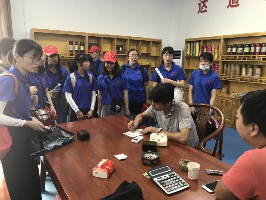 通过村委会负责人详细的介绍,实践队员们对汉口村香产业的产品销售情况有了较为全面的了解。目前,汉口村每年生产的香产品除了销往国内各大城市,还远销泰国、印度尼西亚等东南亚国家。此外,实践队员们参观了汉口香厂——一家具有三十多年历史的老制香厂。在香厂负责人的介绍下,实践队员们了解制作永春篾香的工艺和具体步骤。制作永春篾香分为制签、裹粉、晒香、染色、包装五个环节。实践队员们走上街头,采访香产品个体销售户,了解近几年汉口村香产品的销售状况,并详细记录。实践队员们还与福州大学生物工程学院科普服务实践队因香结缘,共同探索汉口村发展的历程,讨论乡村振兴与发展的实践经验。