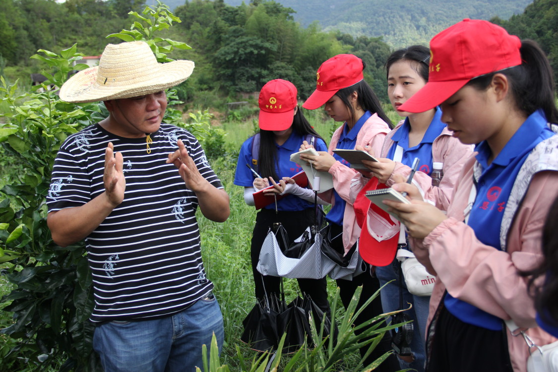 (图为实践队员记录三红蜜柚种植流程)