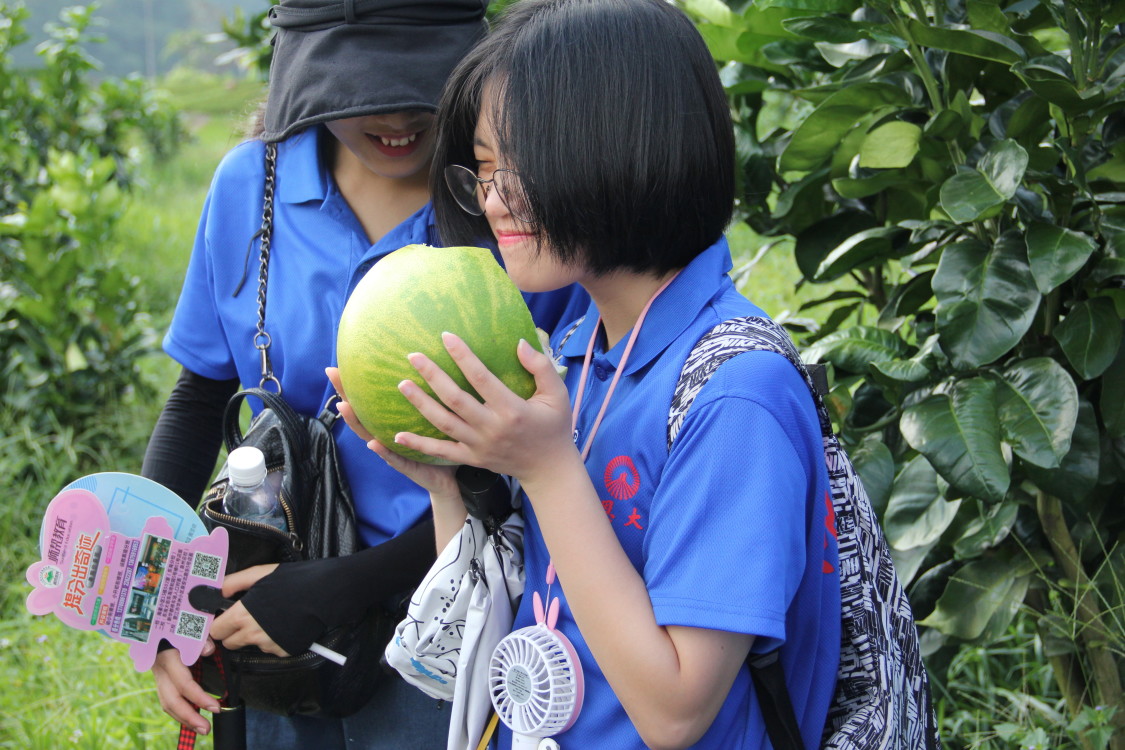 (图为实践队员考察试验挂果蜜柚)
