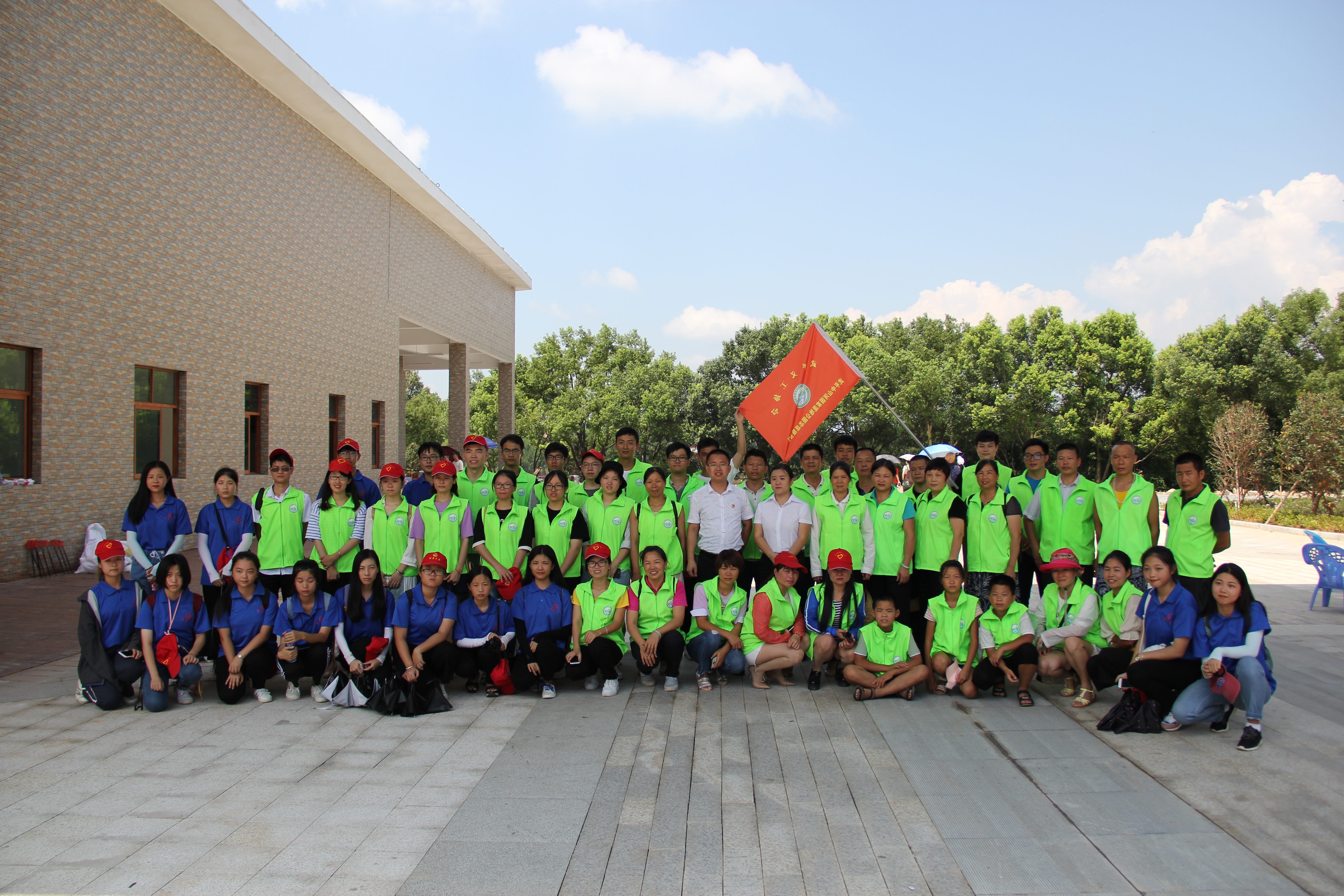 (图为实践队与志愿者服务队及团县委书记合影)