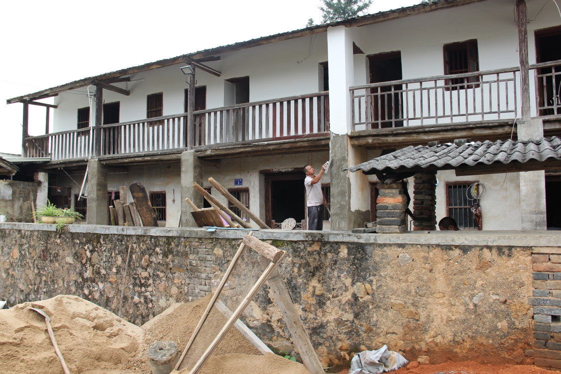 (图为工人为贫困户整修房屋)