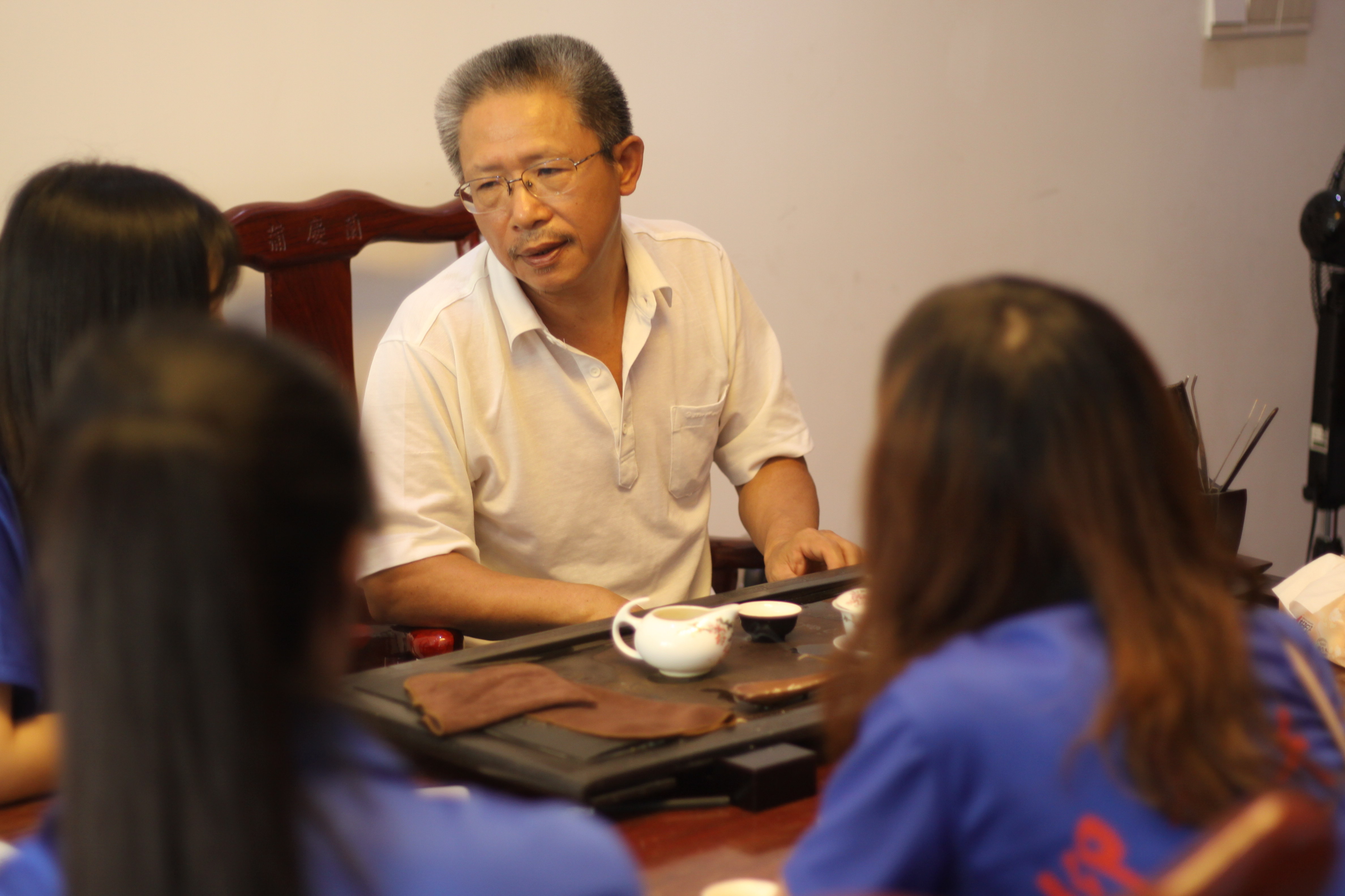(图为蒲良宫老师给实践队员介绍永春制香的历史)