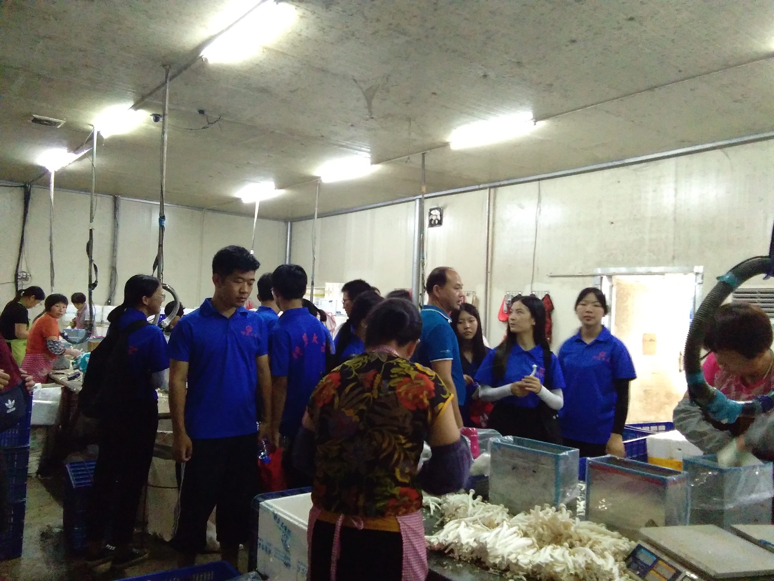 (图为实践队员们参观海鲜菇的生产)