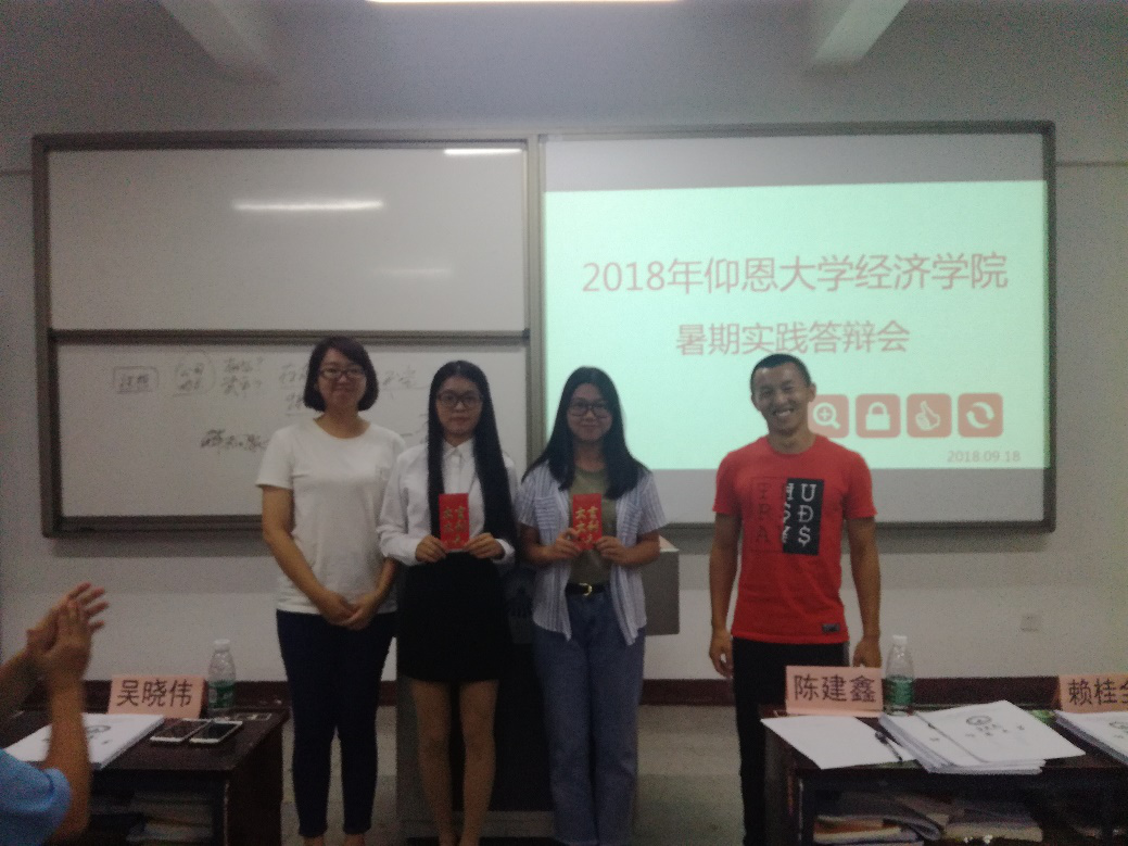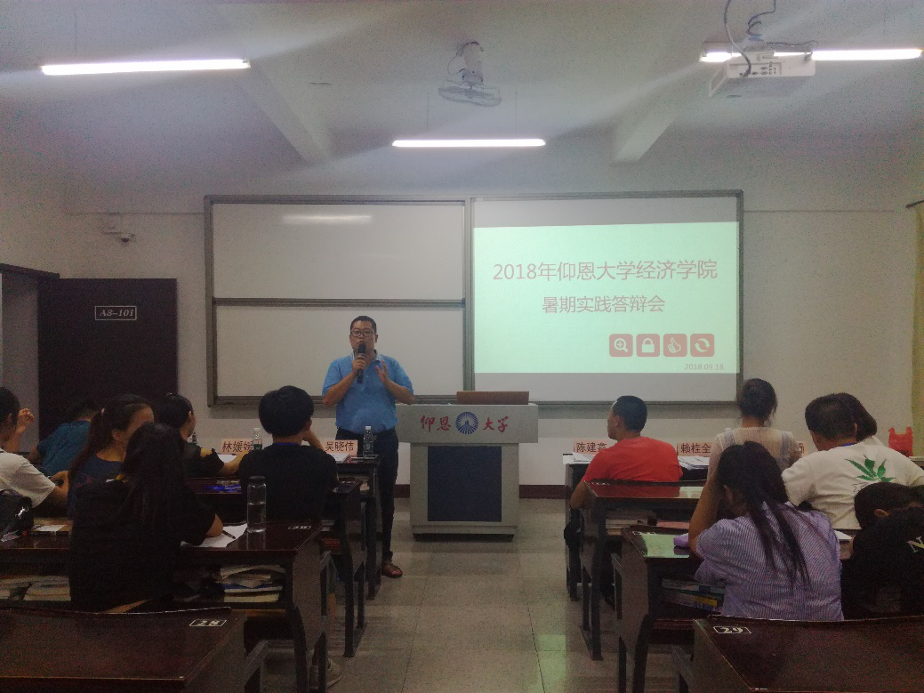 9月18日晚7时,九游体育官网2018年度暑期社会实践活动答辩会于仰恩楼A3-101室顺利举办。出席并担任本次大会评委的有学院党总支书记副院长吴晓伟、学院团委书记陈建鑫、学院学生会指导老师林珊珊、学院就业指导工作坊指导老师赖桂全、经贸系党总支部书记林晓富及学院学务秘书林媛媛。