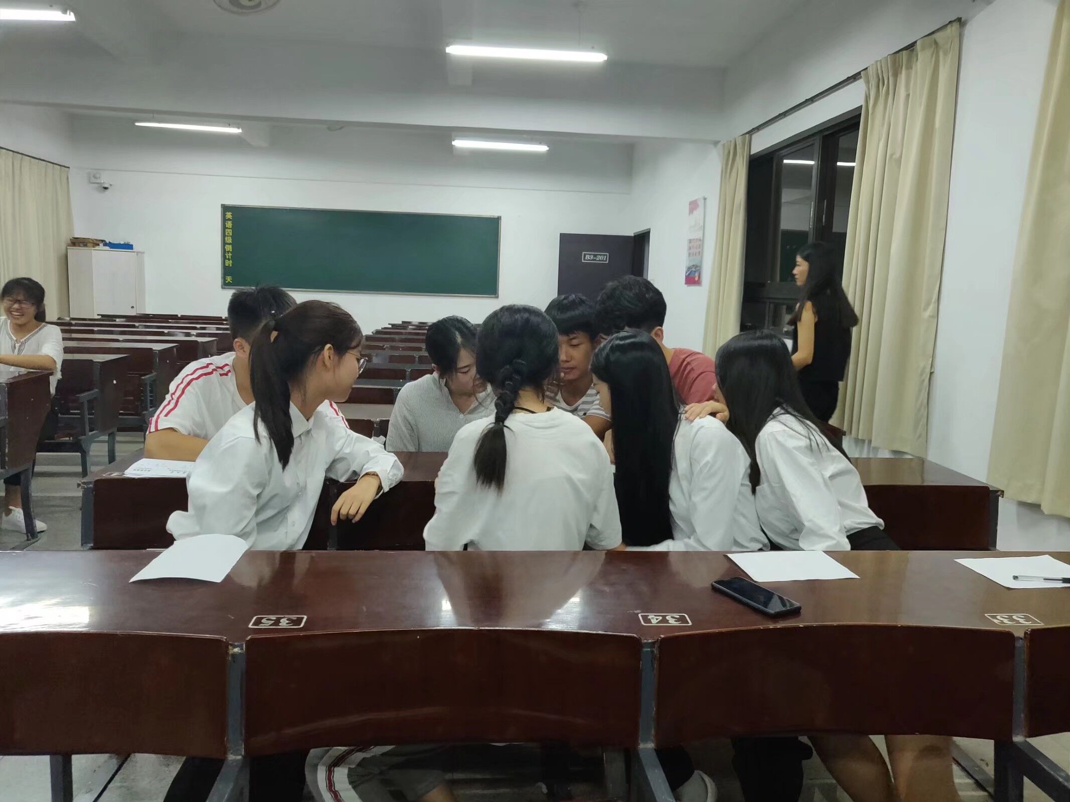 换届大会分为两个内容,第一轮是进行每人四分钟的限时介绍与答题,第二轮是进行无领导小组讨论。在大会中,竞选干部的同学们演讲自信条理清晰,吴院长与赖老师则根据同学们演讲内容与答题的条理性进行打分,现场气氛紧张又不失活泼。在第二轮的无领导小组讨论中大家都积极地提出自己的想法,最后都取得不错的成绩。竞选大会结束后,吴晓伟老师为本次换届大会做出了点评并给予了同学们高度赞赏。