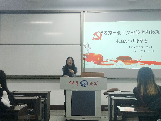 为了深入贯彻落实全国教育大会的精神,12月3日晚七时,九游体育官网金融系学生第一党支部于仰恩楼A5-105开展以“培养社会主义建设者和接班人”的主题学习分享会,金融系学生第一党支部组织委员何丽玲老师和支部全体干事以及金融系16、17级党小组代表参与了此次活动。