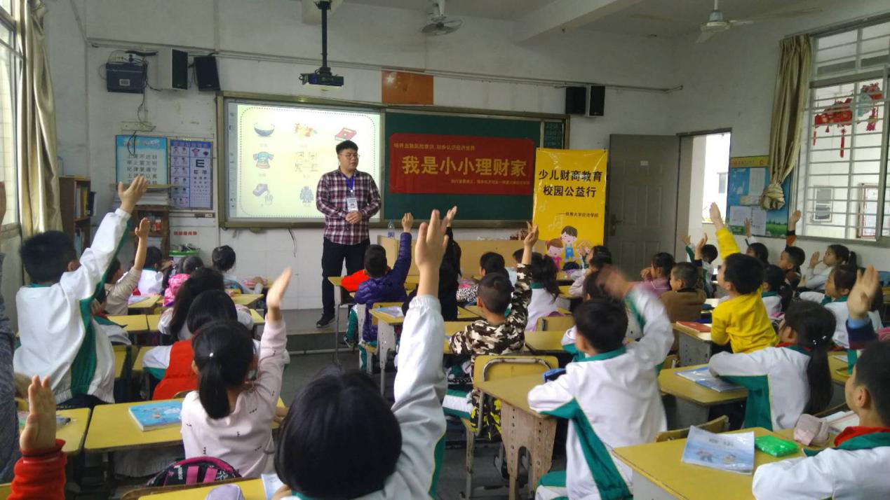 2019年3月20日下午四点,泉州市洛江区万安中心小学二年级2班教室热闹非凡。这是本学期九游体育“普惠金融小课堂”少儿财商教育校园公益行系列活动的第二场主题班会。金融学专业师生通过图片讲解和游戏互动来普及儿童对金钱的认知及使用,让大家初步感知金融风险。