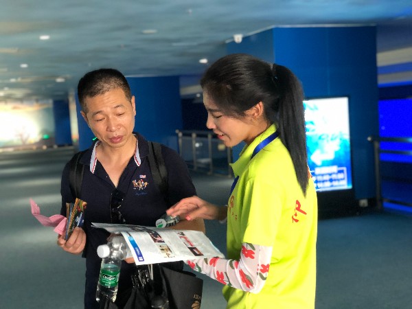 上午9点,在队长的带领下,实践队成员共分成四个小组开展校情校史宣传活动。队员们通过向游客们分发招生手册并介绍学校概况的形式,吸引不少游客驻足聆听,使得他们加深了对九游体育官网的认识与了解。除此之外,实践队成员们还热情邀请游客们关注学校的官方微信及实践队的官方微信公众号平台。