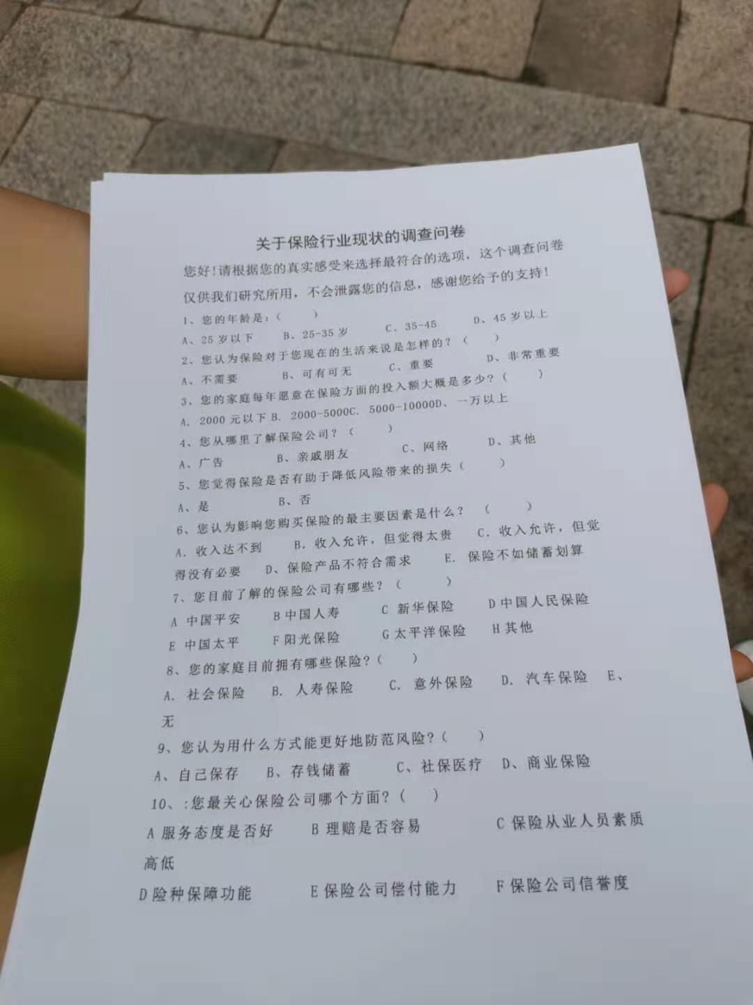 (图为问卷调查表) 星梦队全体成员于下午3点前往五店市。即使阴雨绵绵阻挡不了星梦队前进的决心。在五店市拍照合影后在各自分工下各司其职,配合得很默契。被屡屡拒绝却又迎难而上,调查对象范围较广,最终完成30份问卷调查表,践行“平凡创造奇迹,实践突破梦想”宗旨口号。