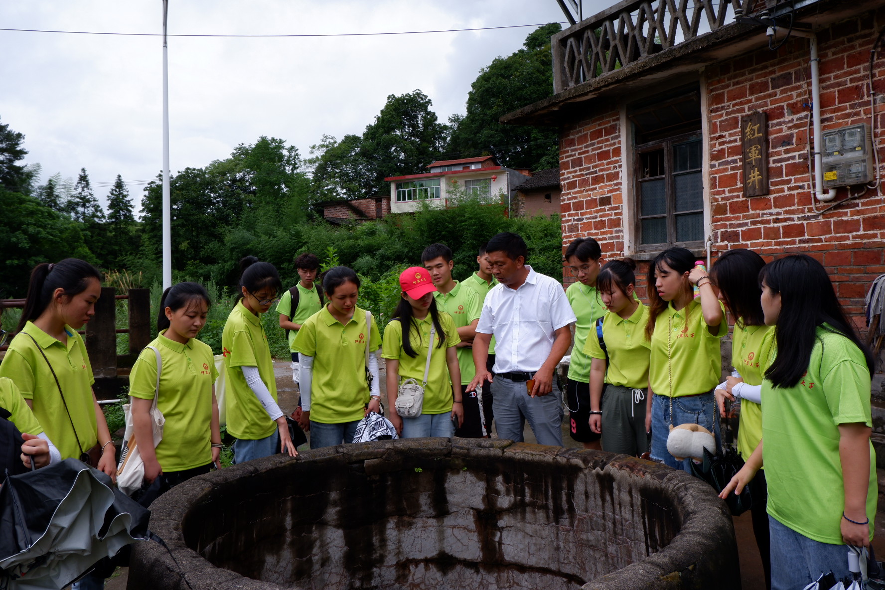 (实践队在了解红军井的由来)