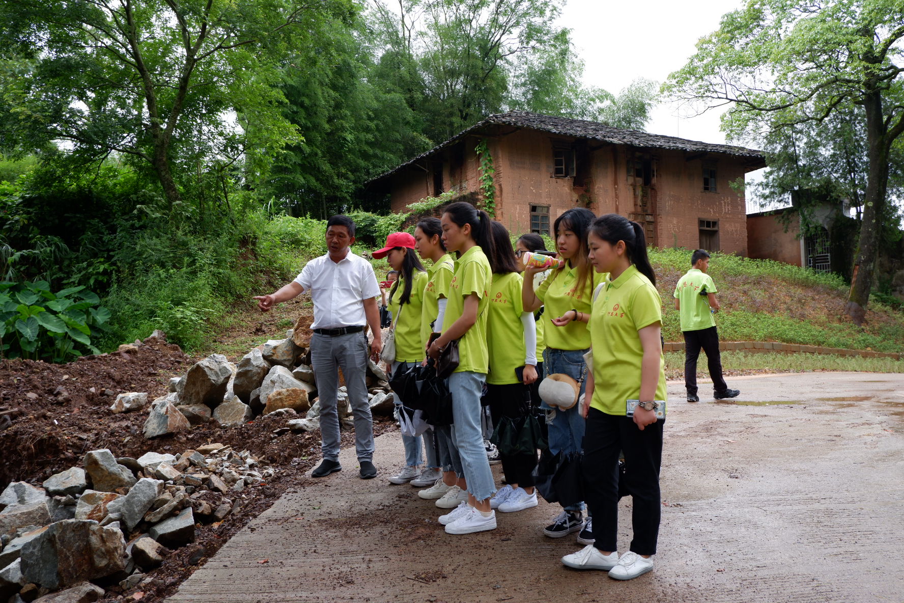 (村支部书记为实践队介绍凤凰山红军长征路线)