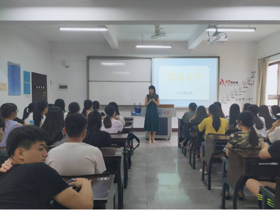(图为班主任正在进行校园安全相关教育) 主题班会由各班班主任主持,班会课上,各班班主任首先采用了观看视频、案例分析等多种形式着重强调了校园诈骗问题。各班班主任向班级同学讲述校园诈骗的复杂性、危害性和一般诈骗分子的常用手段;并就大学生该如何提高防范意识,提高警惕进行了详细的介绍。同时,各班主任带领班级同学学习了流行性感冒、宿舍用电安全、交通出行安全等问题,要求班级同学增强安全意识,做到加强锻炼预防感冒,在宿舍正确用电做到不私拉电线不使用大功率电器,出行不坐“黑车”,遵守交通规则。