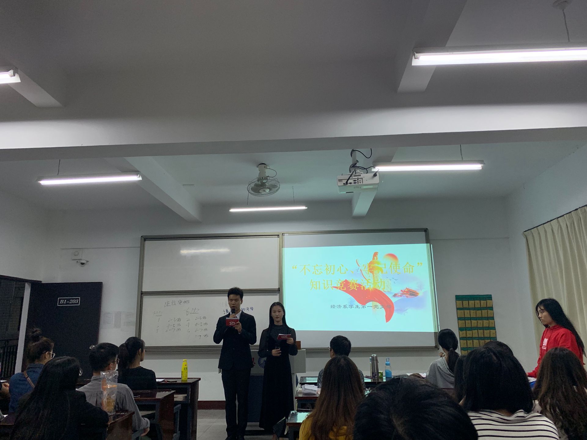 2019年10月29日,九游体育官网经济系学生第一党支部在B1-203室进行了关于开展“不忘初心,牢记使命”的知识竞赛活动。会议到场人员有支部副书记赖晓玲、组织委员仲平、以及经济系全体党员与积极分子。