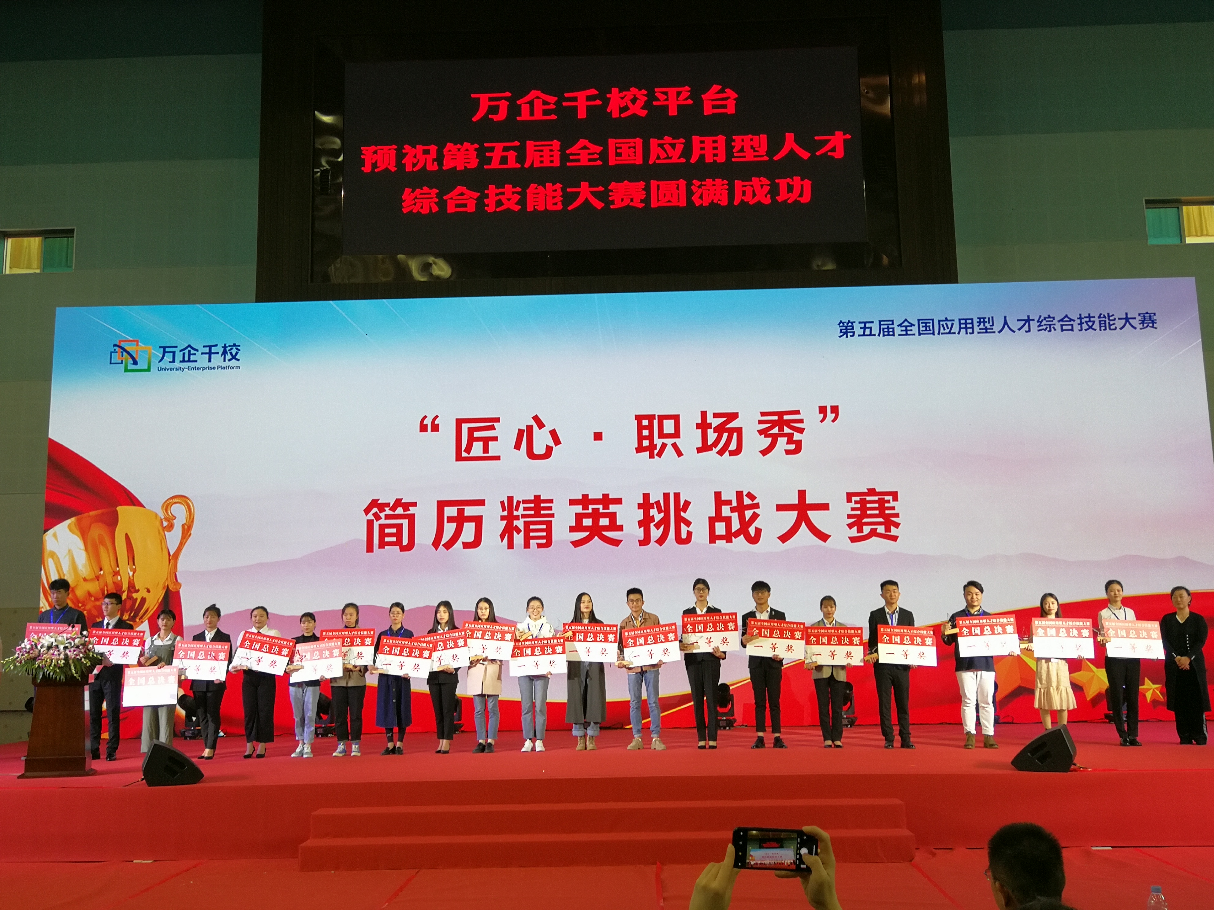 (图为颁奖典礼现场) 第五届全国应用型人才综合技能大赛由中国国际经济技术合作促进会、海口市人民政府、世界职业教育大会暨展览会组委会联合主办。为我校学生提供了良好的展示平台,通过大赛促进了学生就业能力素养的提升。(赖桂全/图文)