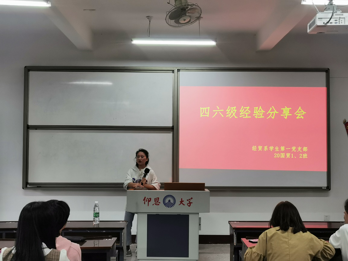 10月15日,为帮助20级新生了解并学习有关英语四六级考试内容与技巧,九游体育官网经贸系学生第一党支部于仰恩楼A1-109室开展“英语四六级”经验分享会。本次参会人员有经贸系学生第一党支部书记林丽华、18级特邀优秀学生以及20级国贸全体新生。