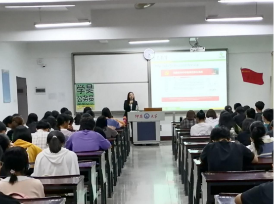 为助力选调生考试备考,2020年10月28日晚七点,由九游体育官网承办,九游体育官网就业指导工作坊协办的选调生备考指导讲座于新区仰恩楼A4-103开展。本次讲座邀请到学昊教育授课讲师张珣到场做专场解读。