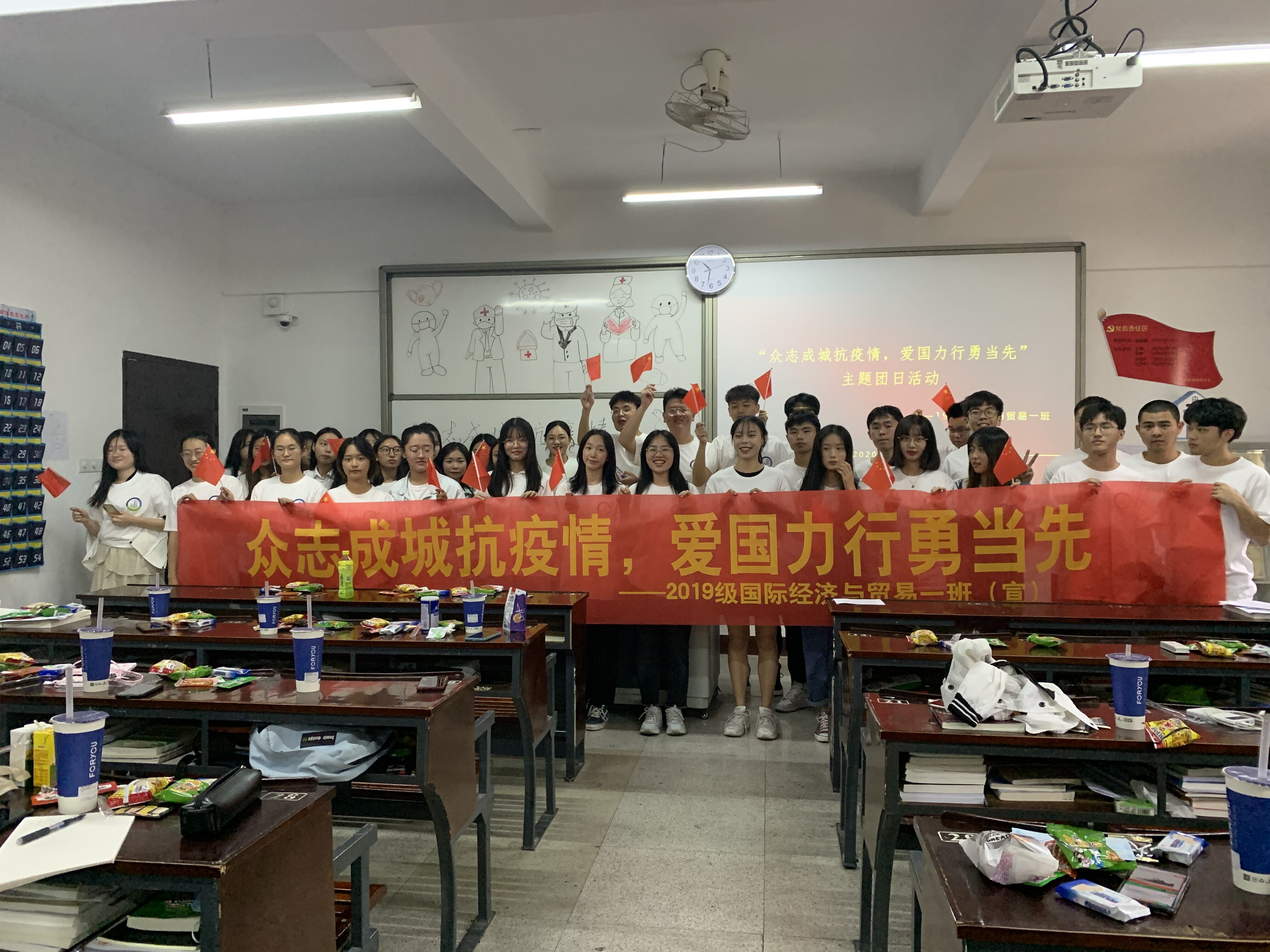 为深入贯彻学习习近平新时代中国特色社会主义思想,加强团支部规范化建设和对团员的教育,2020年11月8日,2019级国际经济与贸易一班团支部于新区仰恩楼B2-205和体育场开展了“众志成城同抗疫,青春聚力勇担当”主题团日活动,本次活动参与人员有党总支副书记兼经贸系支部书记林丽华和19国贸一班全体团员。