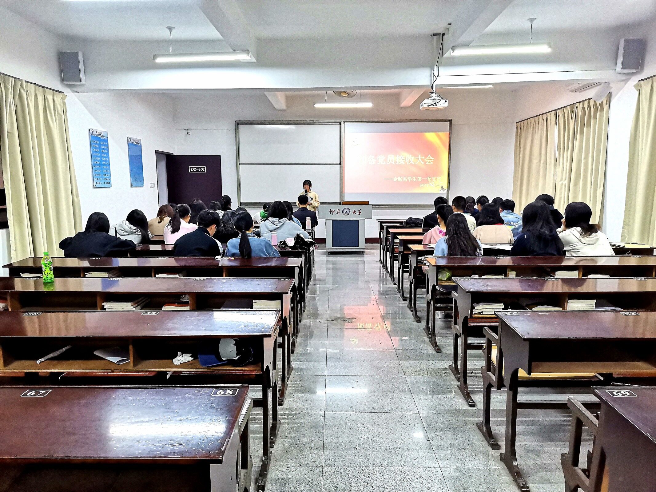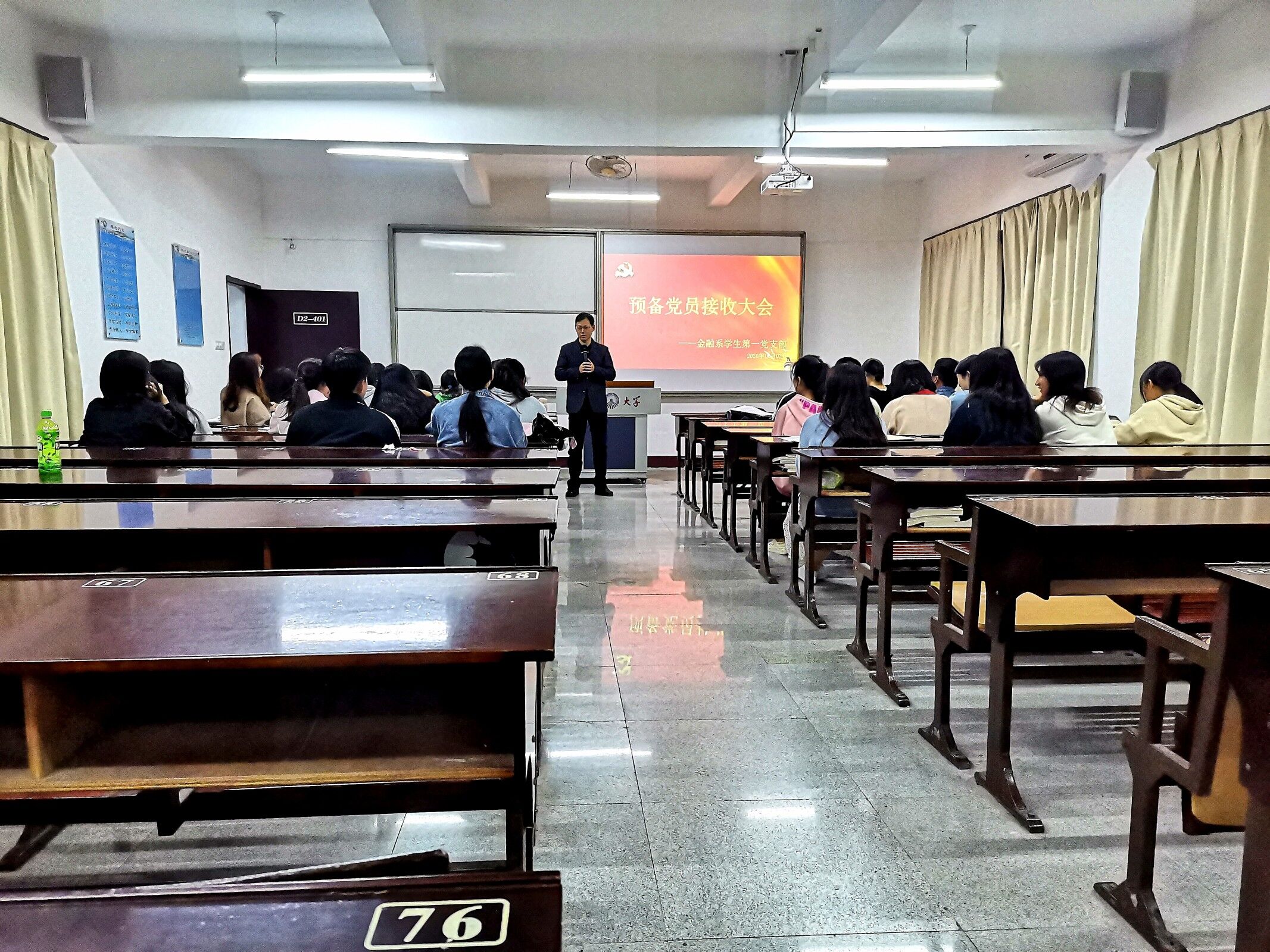 为响应党的号召,培养优秀党员,2020年12月3日,由金融系学生第一党支部主办的党员接收大会于仰恩楼D2-401召开。本次会议参会人员有支部书记孙保献、组织委员何丽玲老师和宣传委员林双妹,以及支部全体党员同志和发展对象。