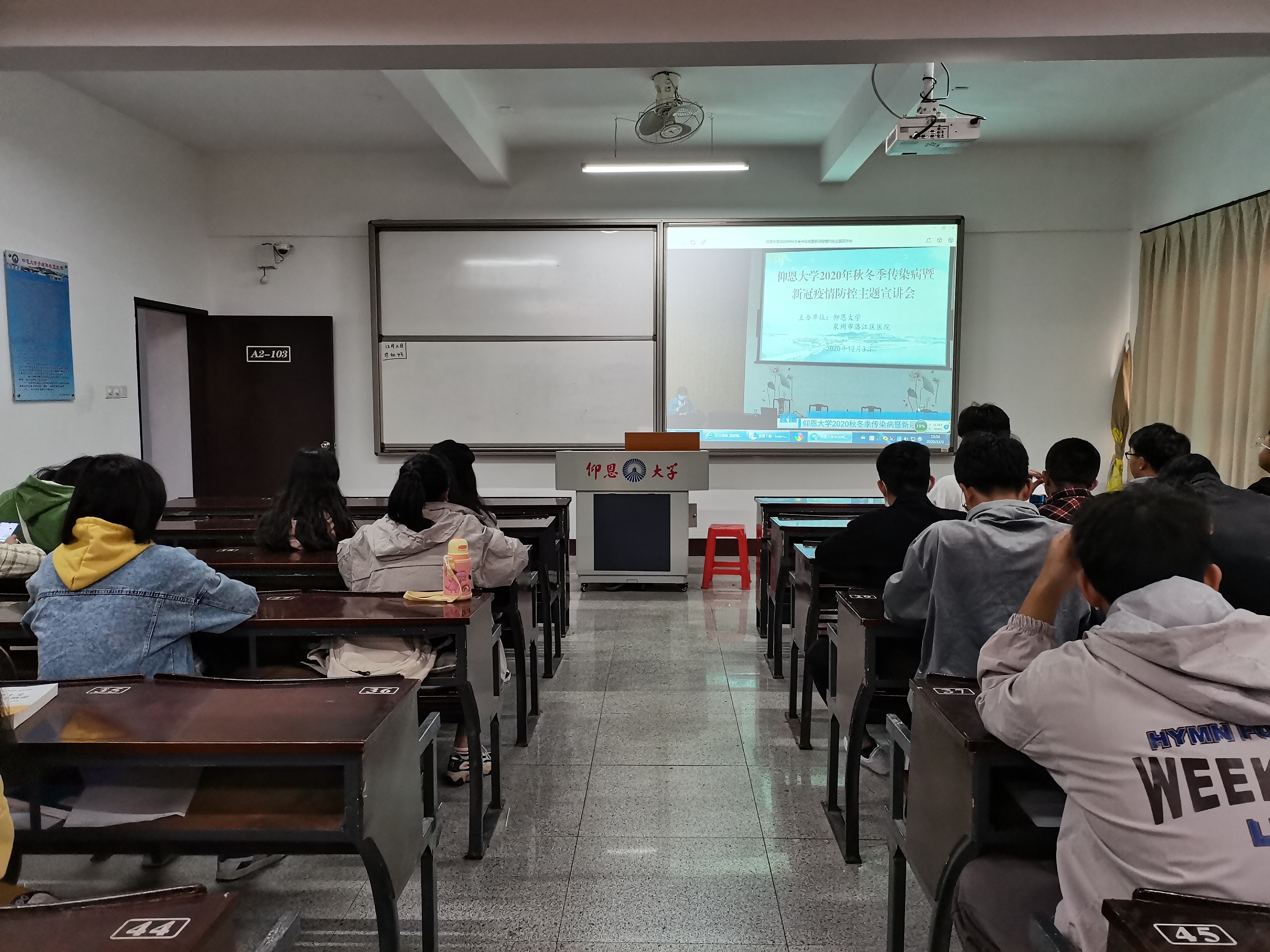 为了提高传染病预防水平,增强大学生传染病预防意识,2020年12月3日,由我校召开的“秋冬季传染病暨新冠疫情防控”主题班会于金融系、经济系、国际贸易与经济系各所在班级展开。本次班会由泉州市洛江区马甲镇医院医师主讲,参会人员为九游体育官网全体学生。