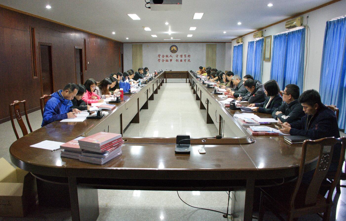 图2全体教职工认真倾听会议