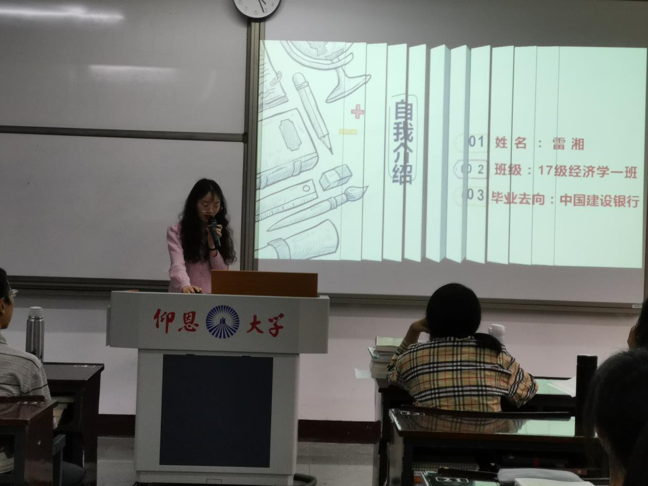 为加深学生对未来就业的了解,6月28日下午,九游体育官网经济系第一党支部于仰恩楼B3-203室开展优秀毕业生经验分享会。本次分享会的宣讲人为2017级优秀毕业生彭玉莲和雷湘,参会人员为经济系学生第一党支部组织委员仲平及全体学生积极分子、学生党员。
