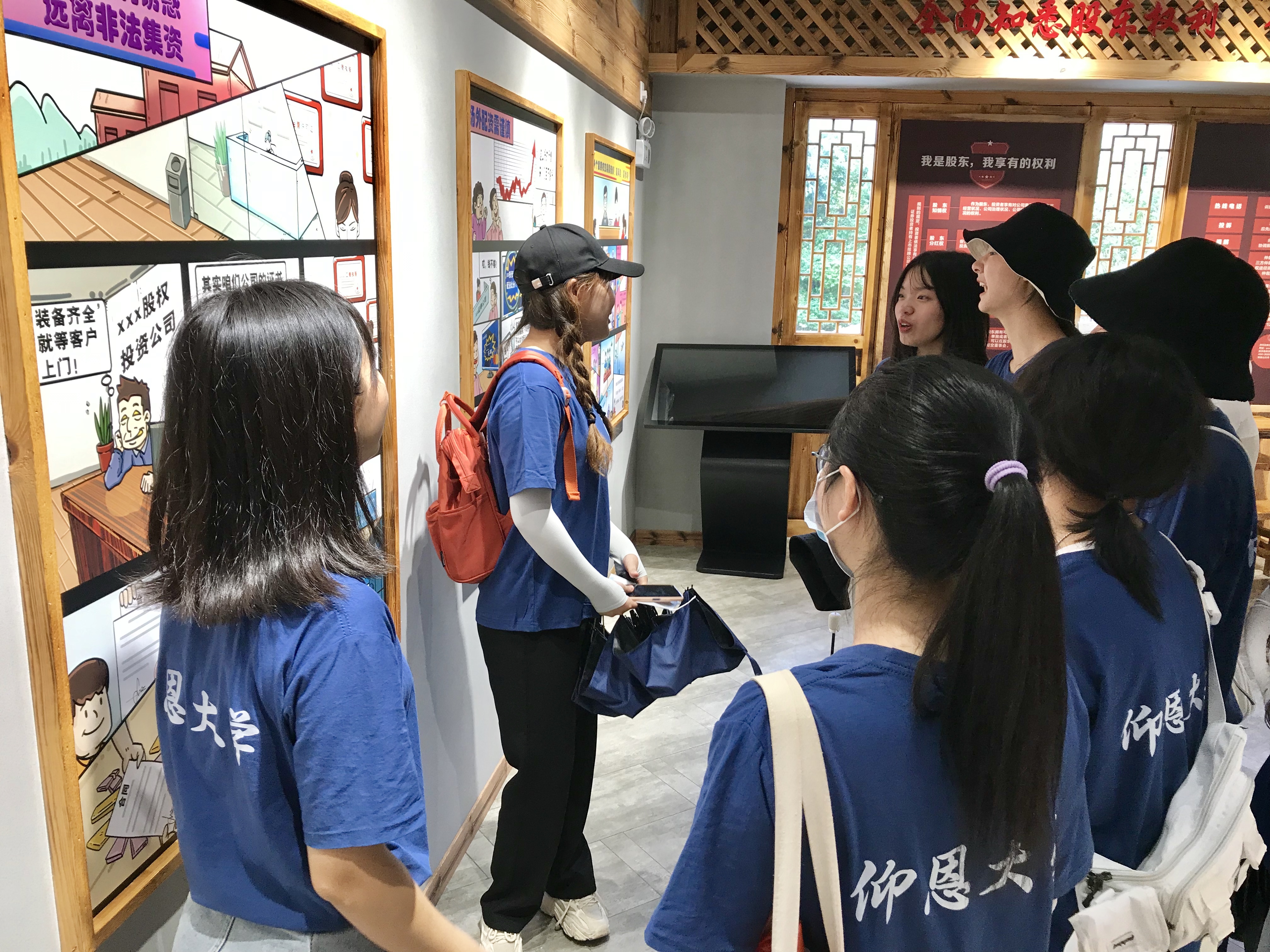 实践队来到兴业证券古田投教基地,受到基地负责人陈红亮先生的热情接待,并随其参观独具兴业证券特色的“投资者教育+红色金融+党建”的投教平台。参观的过程中,陈先生通过向实践队员们普及证券相关知识、介绍证券行业以及证券公司的发展现状以及该投教基地的文化背景,使实践队员们了解到该投教基地特有的红色金融文化,学习防范金融风险以及金融诈骗,同时也充分认识到古田投教基地对弘扬红色金融文化和资本市场健康稳定发展的重大作用。