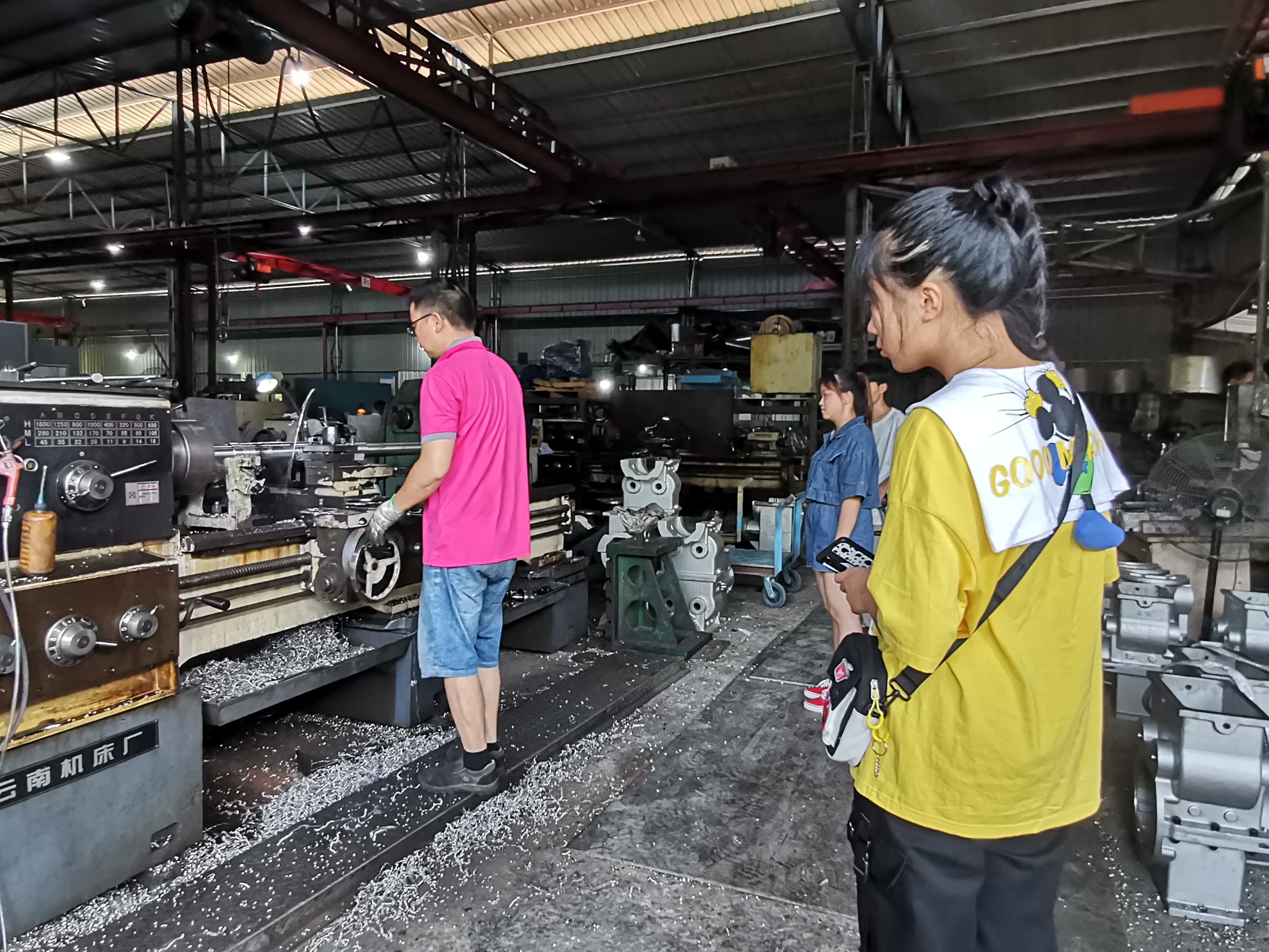 图2队员们参观了解陶瓷机械的生产过程