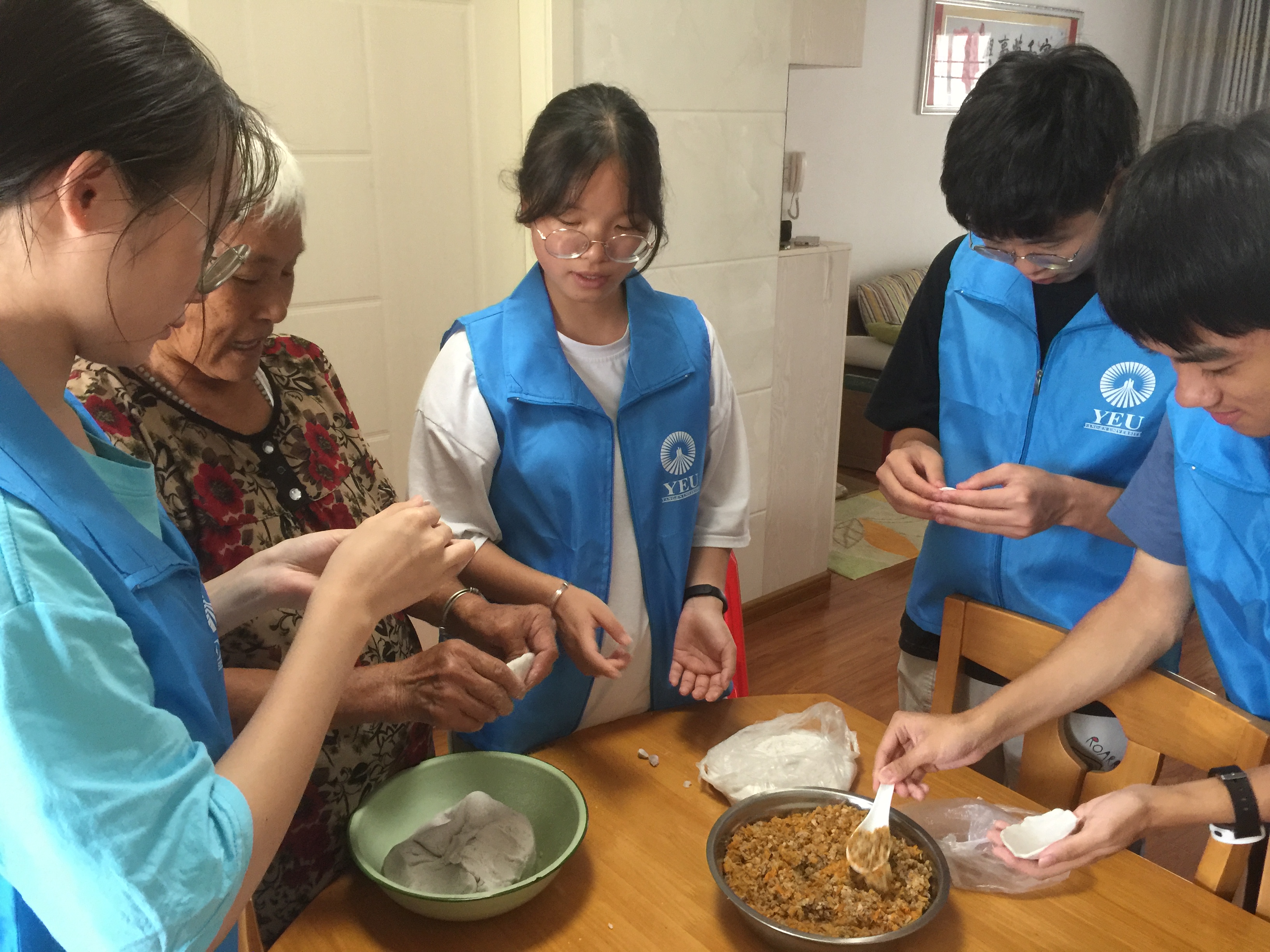 为了解明溪风土人情,实践队走上了寻“食”之旅,此“食”不仅是明溪的美食,还是三明的非物质文化遗产,它就是客秋包。实践队寻访了当地的村民,在与一位老奶奶的谈话中,队员们了解到客秋包的悠久的历史文化,并学习客秋包的制作技艺。在老奶奶的指导下,队员们尝试学习制作客秋包,在亲手制作客秋包的过程中,感悟浓厚的客家风情。