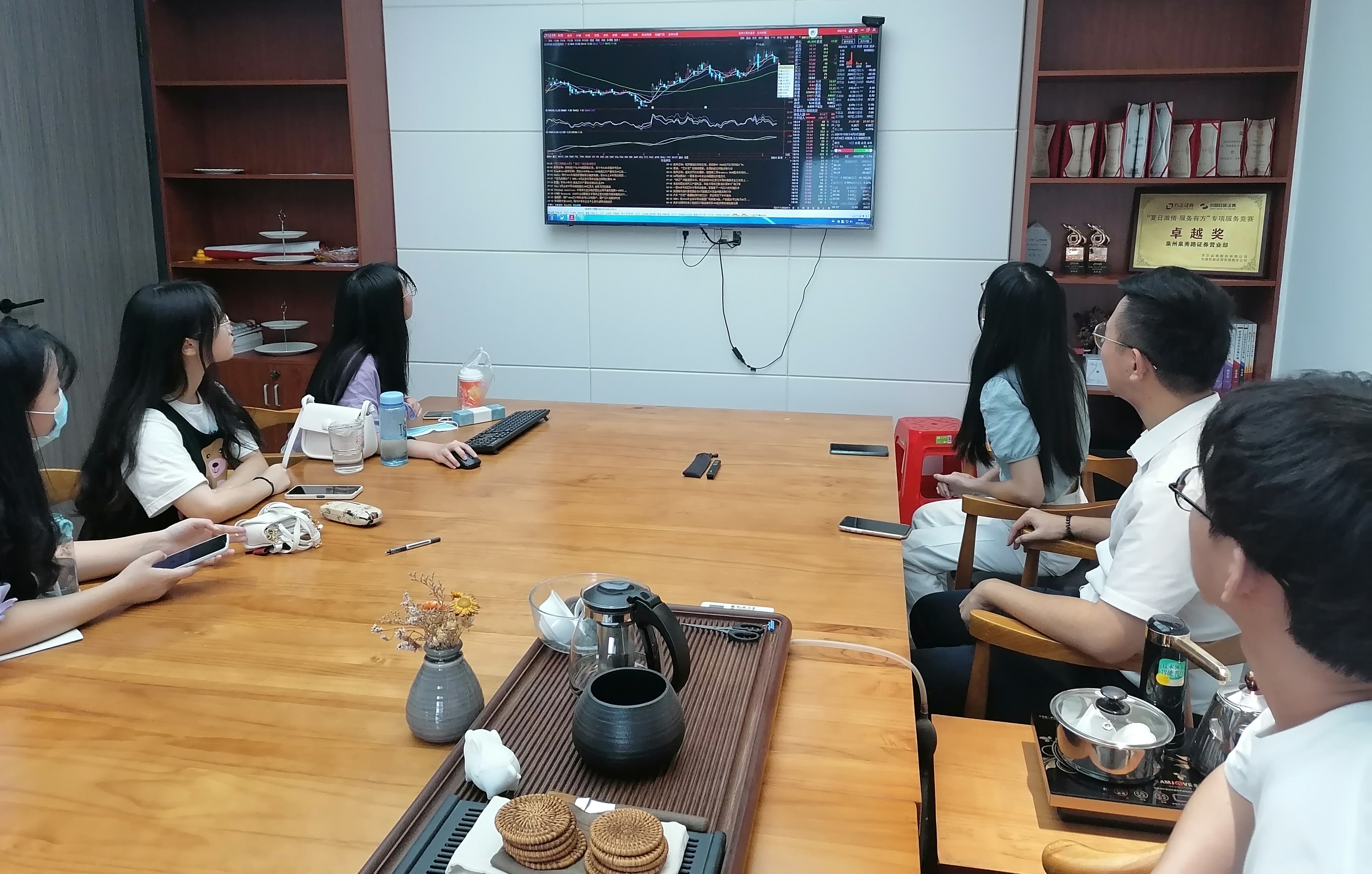 在实践队队员学习掌握证券公司的结构与运营的基础上,方正证券营销人员施维肖先生围绕证券、财富管理、资产管理、投行与机构等业务,进一步向实践队队员介绍了方正证券的业务范围。施先生以盈胜投顾团队为例引出与方正证券长期合作的几个投顾团队,以合作团队的业绩情况来特别介绍了证券业务中的投顾业务。此外,庄汉波先生还鼓励队员用股市相关指标分析股票的涨跌趋势,并一一指出队员的不足,同时利用视频讲解进一步帮助队员学会打新股、打新债的具体操作。