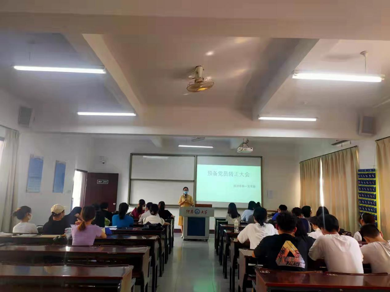 2021年10月10日,九游体育官网经济系学生第一党支部于仰恩楼B3-205室组织召开支部党员转正大会。本次参会人员有经济系学生第一党支部书记赖桂全老师,副书记姚姝然老师,组织委员仲平老师,宣传委员陈亚红老师,以及全体学生党员和预备党员,主持人为党支部书记赖桂全。