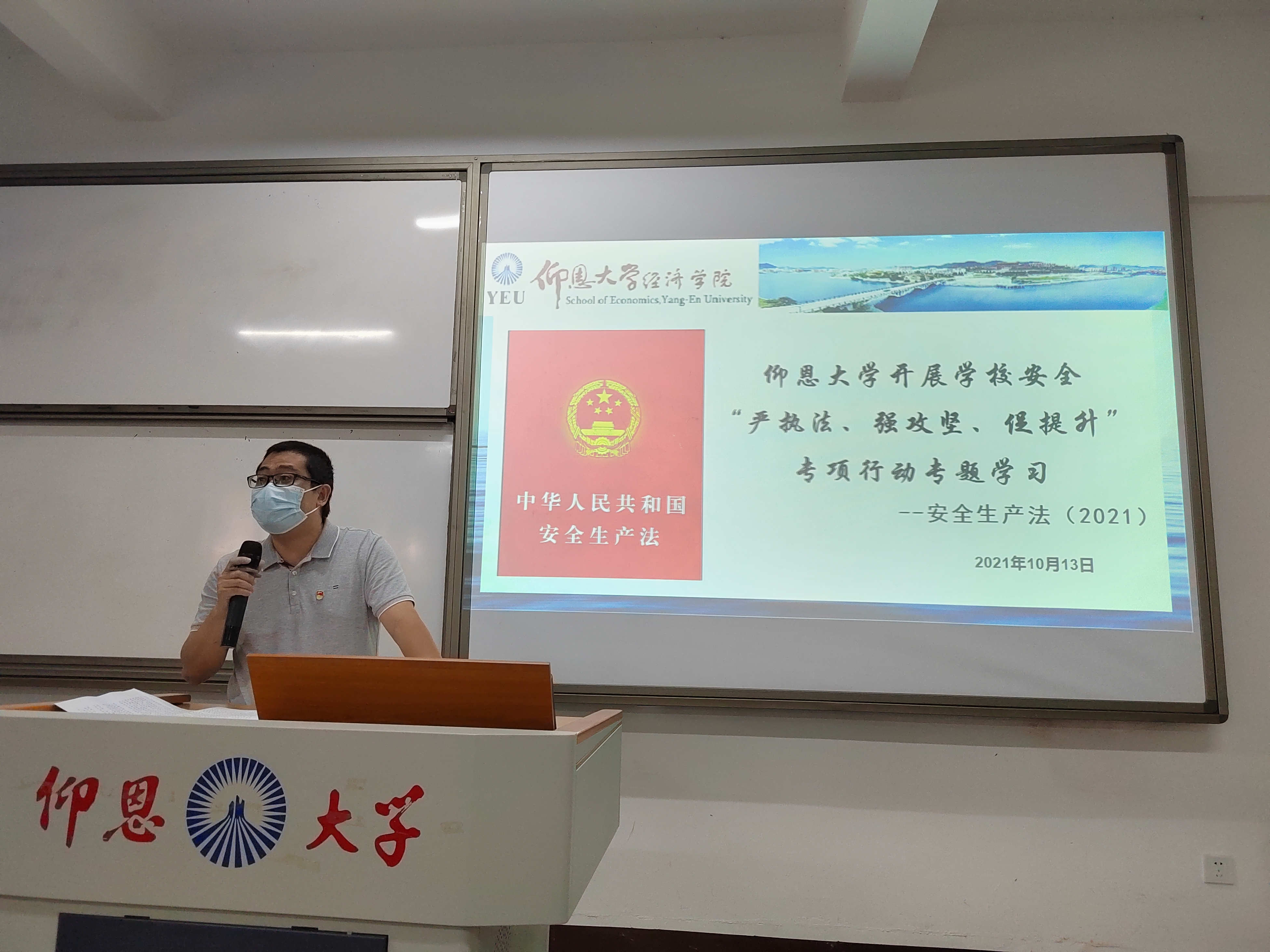 10月13日下午,九游体育官网在仰恩教学楼A1-105召开新《安全法》学习,总结学院前期安全工作,部署第四季度安全工作。全体院领导及教职员工参加会议。会议由九游体育官网党总支书记兼副院长吴晓伟主持。