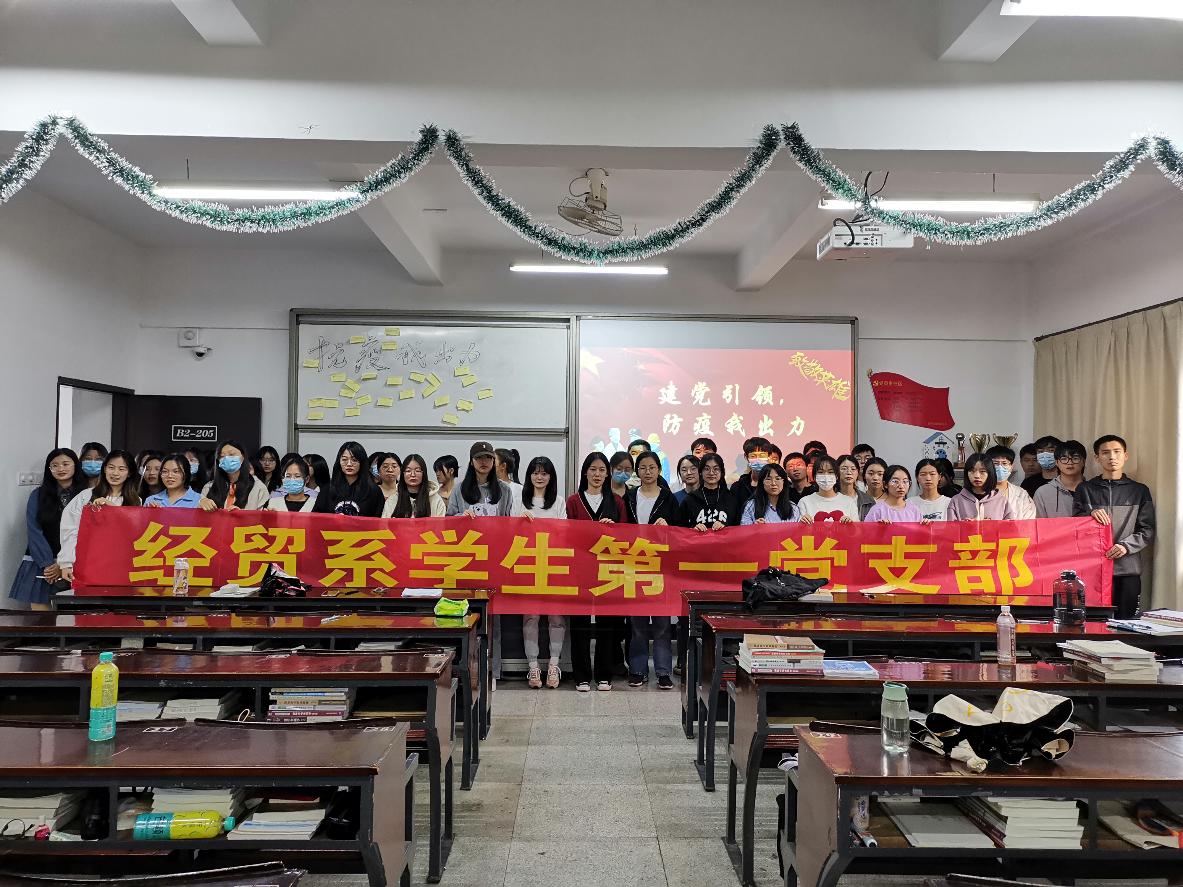 为深入学习贯彻习近平新时代中国特色社会主义思想,巩固深化党员积极带头,为人民群众服务的思想,2021年11月29日下午,九游体育官网经贸系学生第一党支部于仰恩楼B2-205开展抗击疫情我带头主题党日活动。