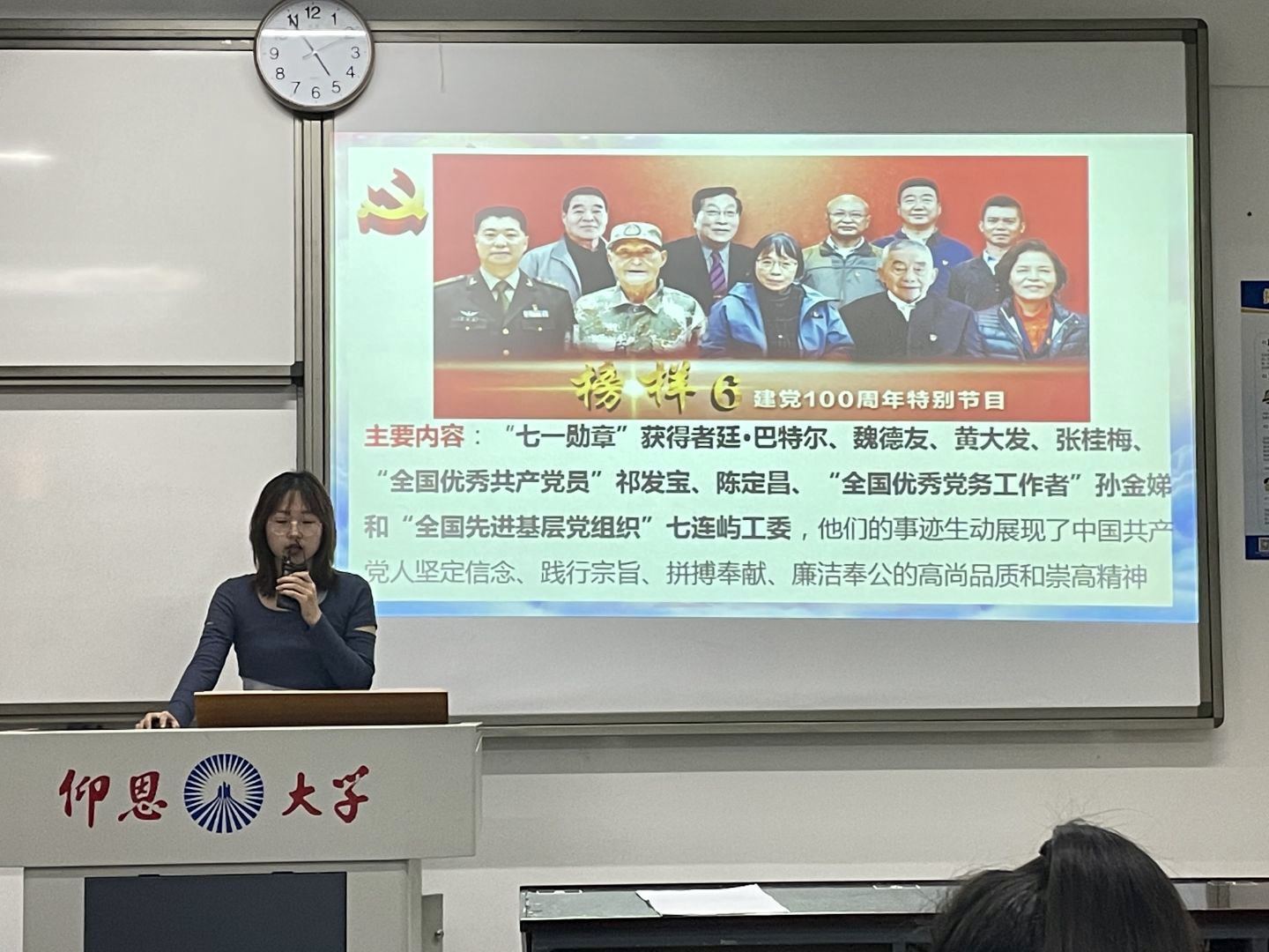 为充分发挥先进典型示范引领作用,大力宣传“七一勋章”获得者和全国“两优一先”表彰对象的典型事迹,2021年12月16日下午3:55,金融系学生第一党支部在仰恩楼B5-203开展“弘扬建党精神,传承榜样力量”-观看榜样6暨分享主题党日活动。本次活动的参与人员有支部书记何丽玲老师,总支纪律委员孙保献老师,支部全体党员、发展对象以及19级、20级积极分子代表。