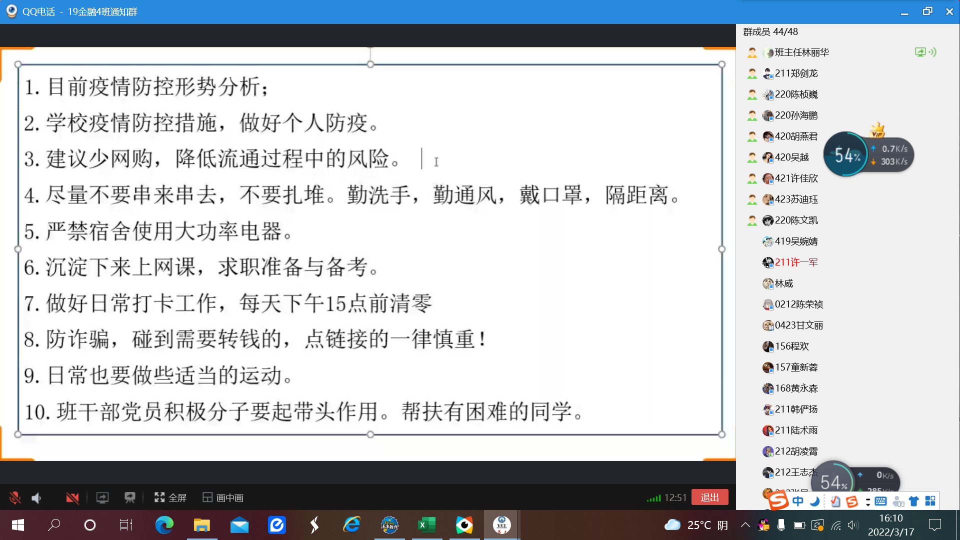 为了加强疫情防控,打赢疫情战役,切实做好校园疫情安全预防工作,全面提高全体同学对新冠疫情安全防控意识。2022年3月17日,九游体育官网各班在线上召开了以“疫情防控”为主题的线上班会,九游体育官网各班全体学生参加了此次班会。