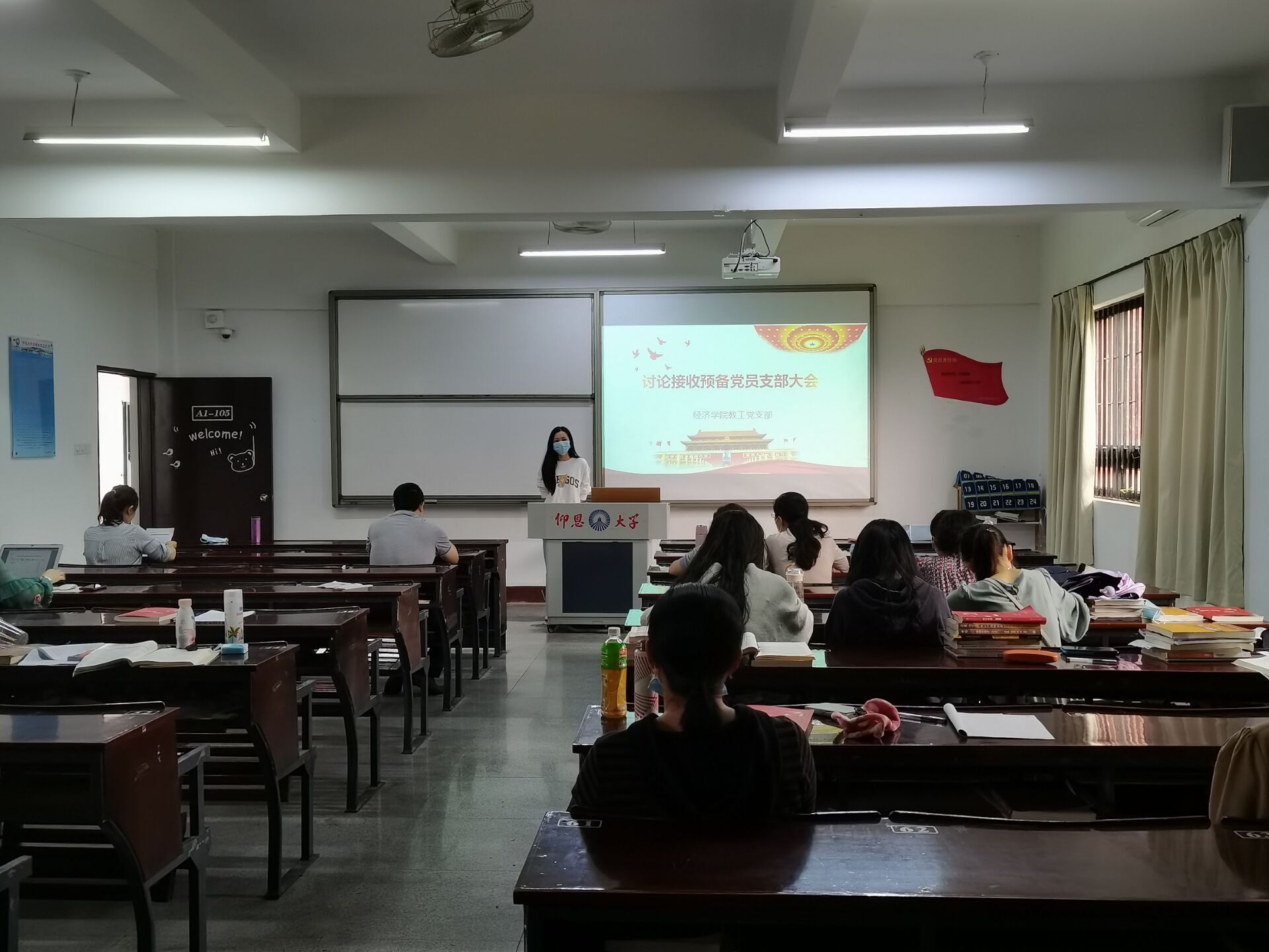 2022年5月25日下午,九游体育官网教工支部在仰恩楼A1-105召开预备党员接收大会。此次会议共有教工支部18名党员同志参会,由支部书记杨娣同志主持。此次会议,教工支部应到20人,实到18人,请假2人,符合会议要求。