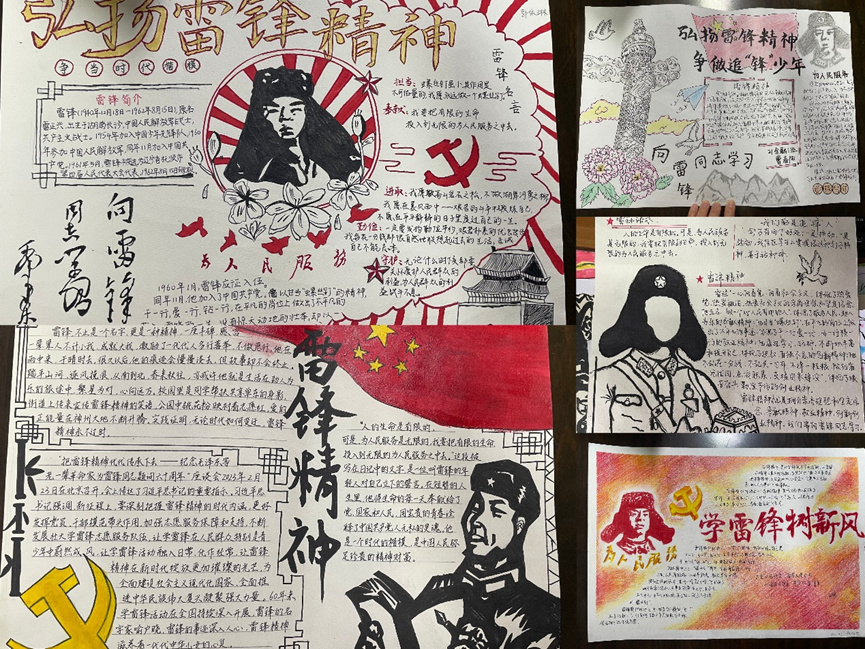 此次比赛中同学们以各具风格、色彩丰富的手抄报形式展示了学习雷锋精神等内容。一幅幅精美的画报讲述雷锋同志的光辉事迹,把对雷锋同志的崇敬和怀念之情深深地融入到了手抄报创作之中,将雷锋精神内化于心,外化于行,使新时代雷锋精神得到进一步的传承和发扬。