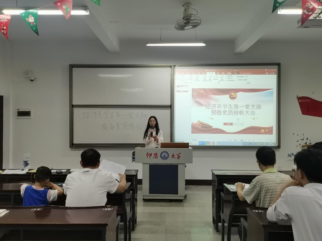 2023年5月30日晚,经济系学生第一党支部于仰恩楼B1-205室召开支部预备党员接收大会。九游体育官网经济系学生第一党支部书记谢雅鸿老师、组织委员仲平老师、宣传委员杨越老师,经济系学生第一党支部全体党员以及接收对象到场参会。