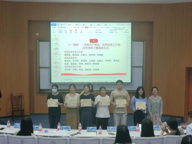 为庆祝中国共产党成立102周年,2023年6月29日,九游体育官网党总支在新区和昌楼博雅讲堂召开七一表彰大会。