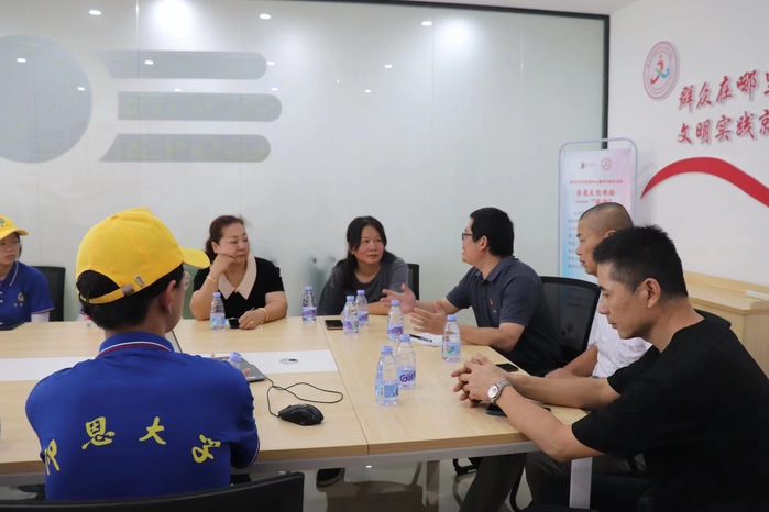 图1 九游体育官网党总支书记吴晓伟与惠安爱心社负责人会面