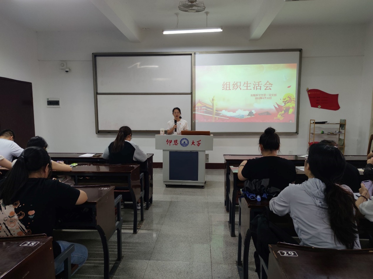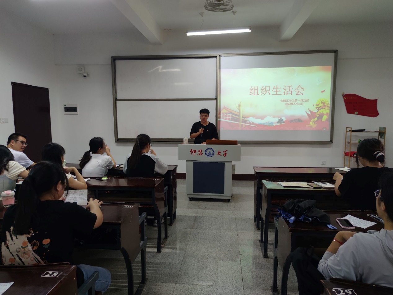 2023年8月30日下午16:00,金融系学生第一党支部在仰恩楼A5-105召开学习贯彻习近平新时代中国特色社会主义思想专题组织生活会,通过开展批评和自我批评,增强党员意识,强化党性观念,发挥党员的先锋模范作用。本次活动的参与人员有支部书记何丽玲老师、副书记姚姝然老师、组织委员詹奕椿老师和宣传委员高嘉华老师,以及支部全体学生党员。