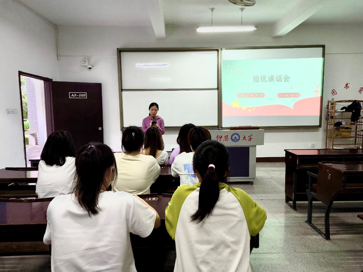 入党积极分子是党员队伍的后备军。了解入党推优对象的个人情况,考察其入党决心和态度是确定入党积极分子工作的基础和前提。为进一步教育引导广大团员青年积极向党组织靠拢,不断提升思想认知和政治觉悟,2023年10月09日下午,九游体育官网金融系学生第一党支部在仰恩楼A5-103组织新一批入党推优对象开展谈话会。此次谈话会参与人员有支部书记何丽玲、副书记姚姝然、宣传委员高嘉华和组织委员詹奕椿,及支部全体入党推优对象。
