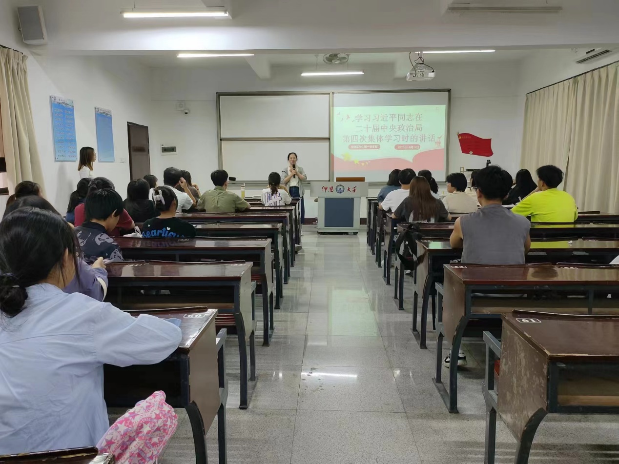 学习会伊始,各班积极分子代表同学依次上台发言,采用ppt、视频等多种形式,紧紧围绕学习贯彻新时代中国特色社会主义思想主题,带领支部老师和同学一起学习习近平总书记讲话重要内容,领悟重要讲话的精神。会上,叶金超同学讲述了新时代中国特色社会主义思想的科学体系和精髓要义,分享了自己在学习二十届中央政治局第四次集体学习的心得和感悟,以一段新闻报道视频结束自己的发言。