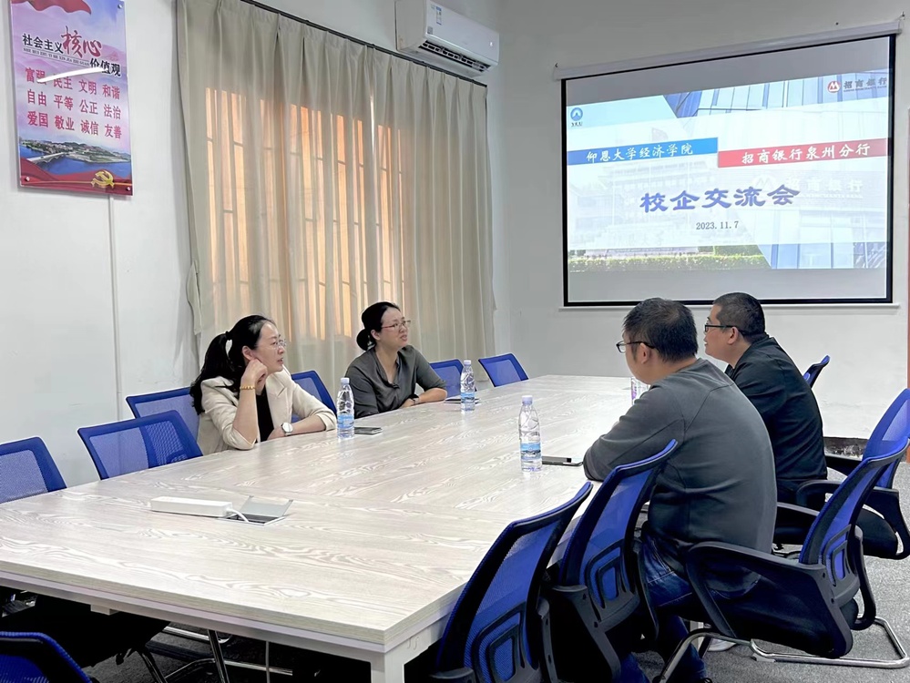 2023年11月7日下午招商银行泉州分行与九游体育官网交流会于九游体育官网新区普照楼124成功举办。招商银行代表人招商银行丰泽支行副行长吴小兰和泉州分行营业部总经理助理蒋琳莉与院方代表人九游体育官网党总支书记吴晓伟老师和九游体育官网职业发展中心指导老师杨越老师展开了友好交流。