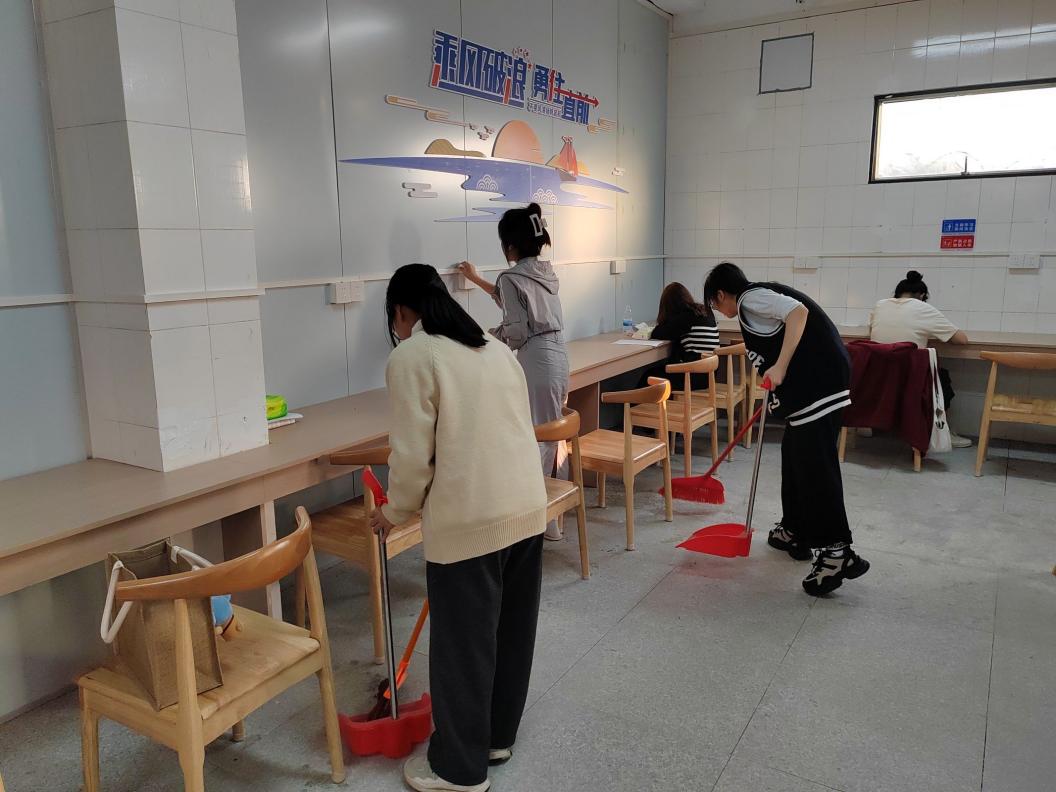 活动开始,负责人介绍了本次清洁活动的任务与意义,对本次活动的卫生打扫工作进行了分配,有桌面整理清洁、地板卫生清洁、墙壁瓷砖清洁、窗户清洁等。接着,各志愿者们根据所分配的任务开始了打扫,充分发扬了不怕脏、不怕苦、不怕累的精神,一些平时容易被忽略的卫生死角,均被细心清理干净。经过大家的共同努力,书院环境卫生得到明显提升,焕然一新。