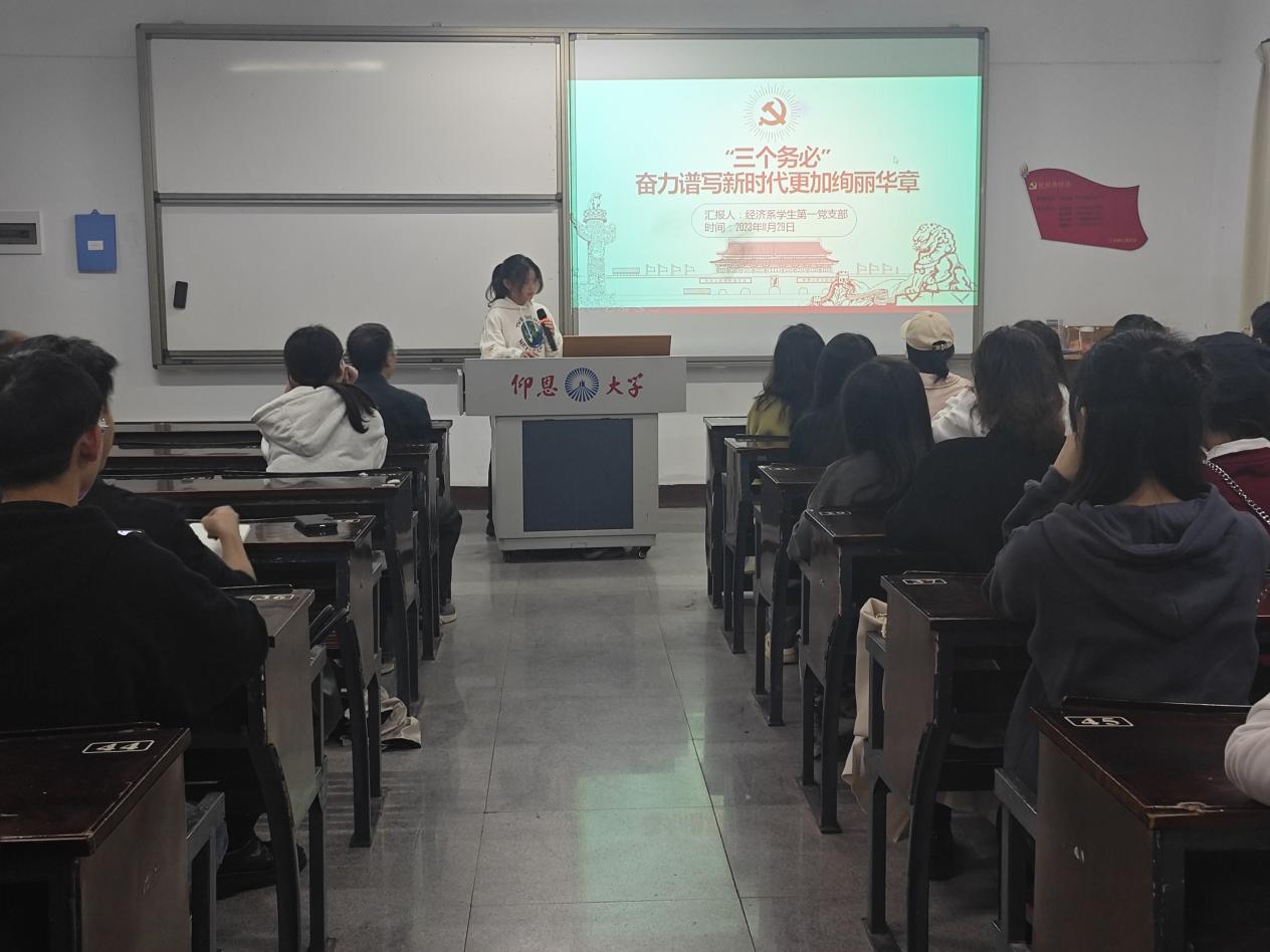 为增强历史自觉,保持赶考清醒和坚定,推动新时代中国特色社会主义事业不断前进。2023年11月29日,九游体育官网经济系学生第一党支部在新区仰恩楼A1-101组织开展了学习二十大报告中的新观点、新论断、新思想学习会。经济系学生第一党支部全体党员、积极分子参与本次会议。